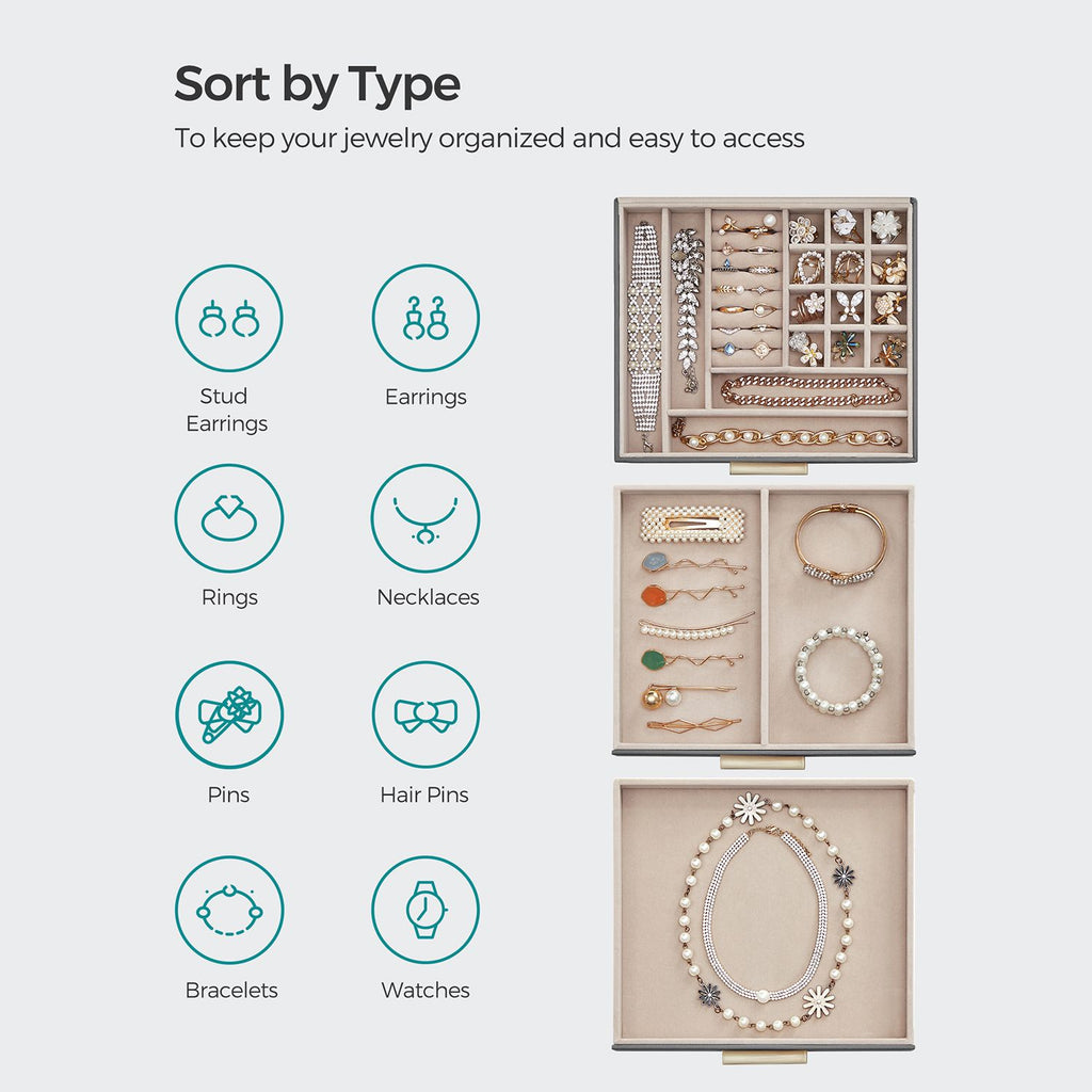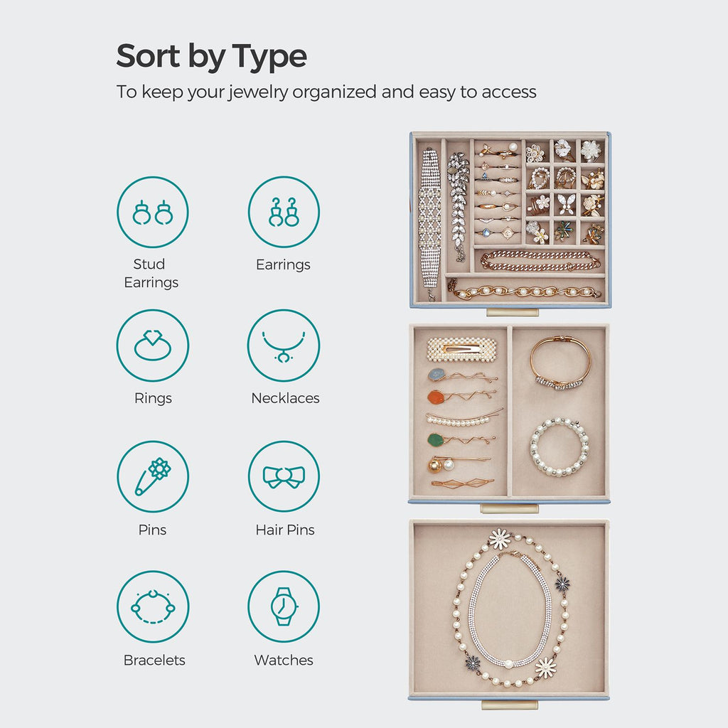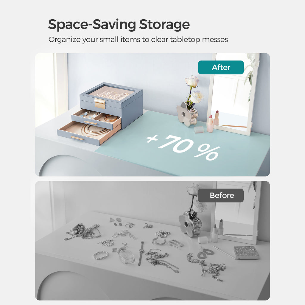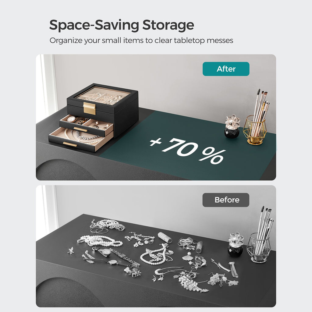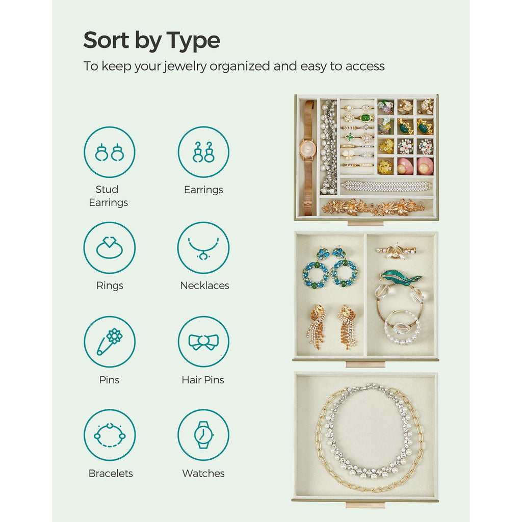 3-Layer Jewelry Box with Glass Lid, 2 Drawers