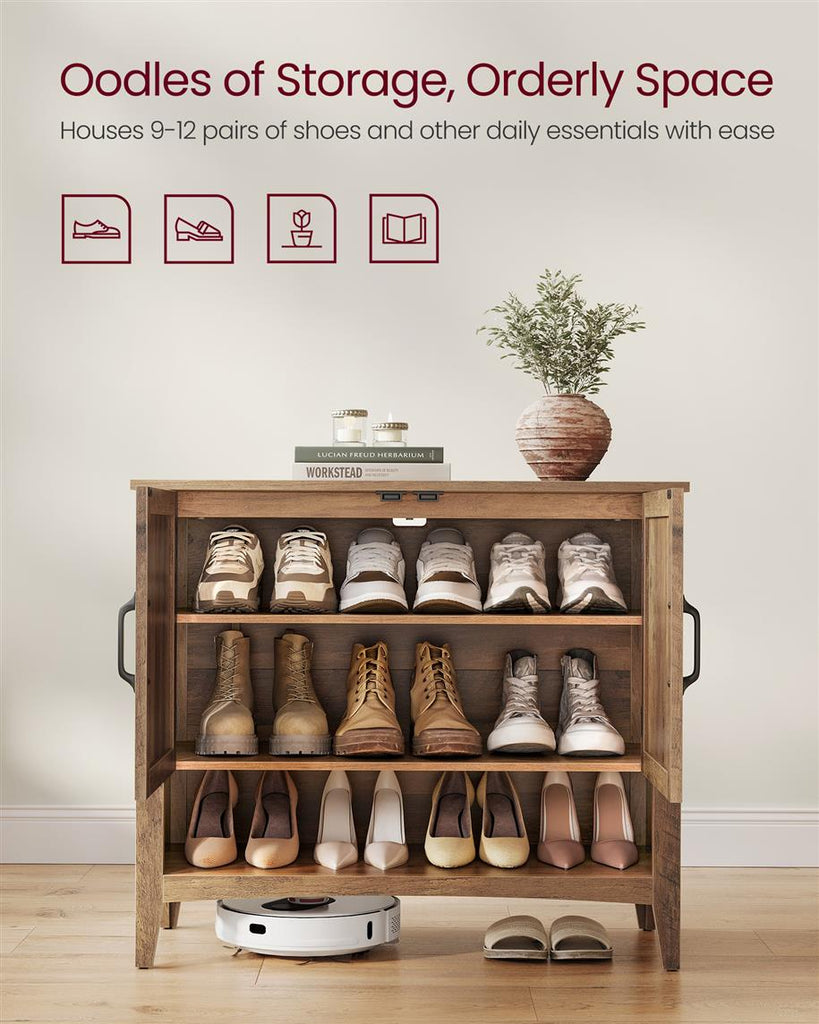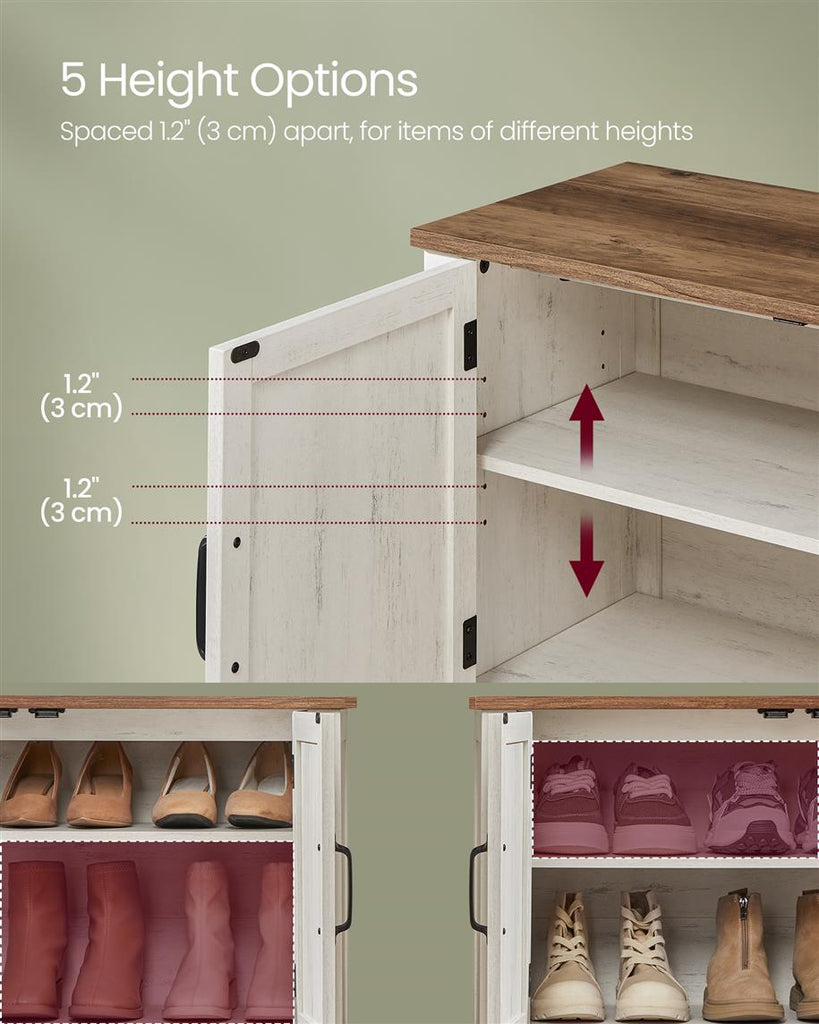 3-Tier Shoe Cabinet with Height-Adjustable Shelf