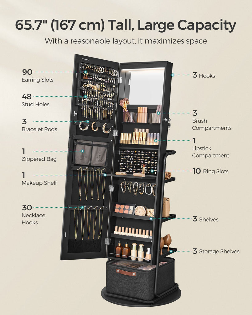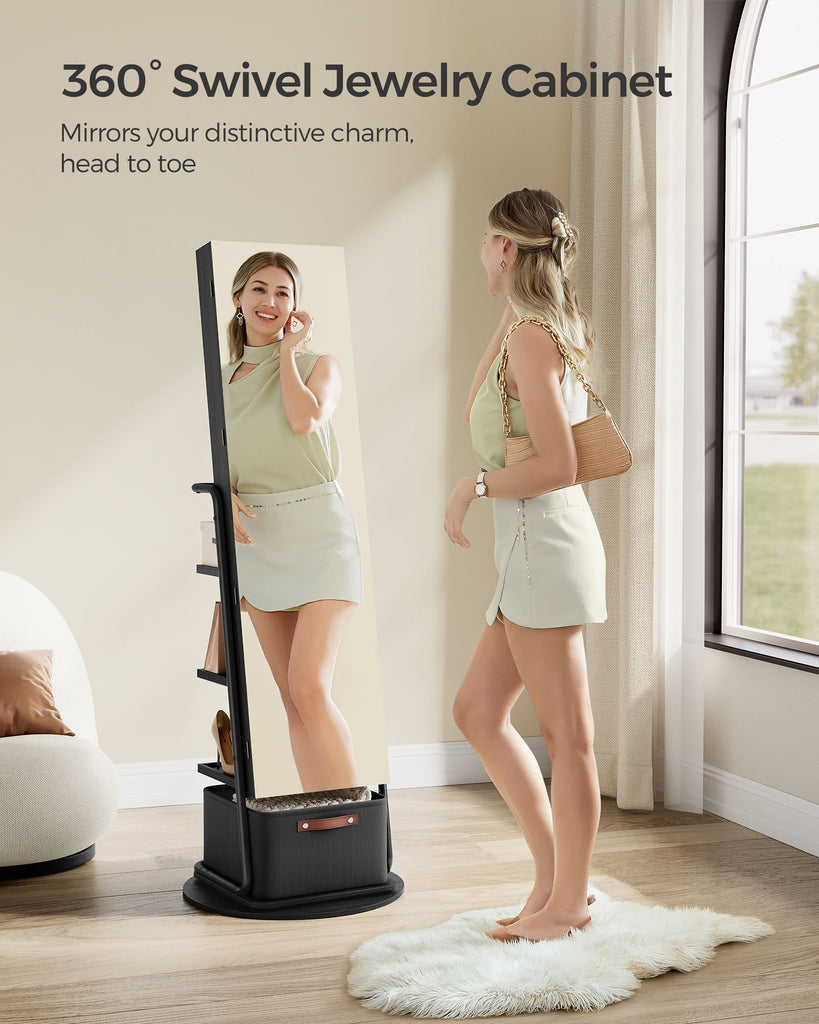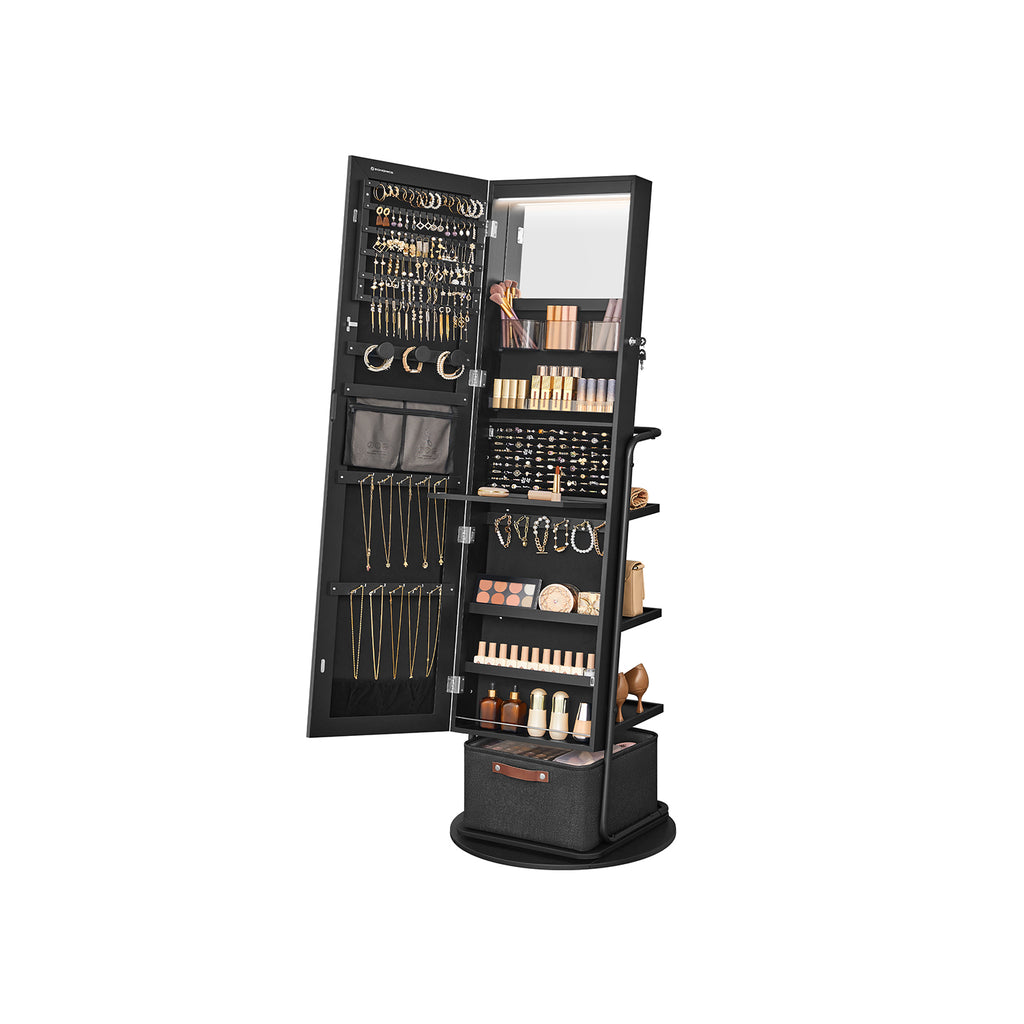 360 Swivel Mirrored Jewelry Cabinet with Lights