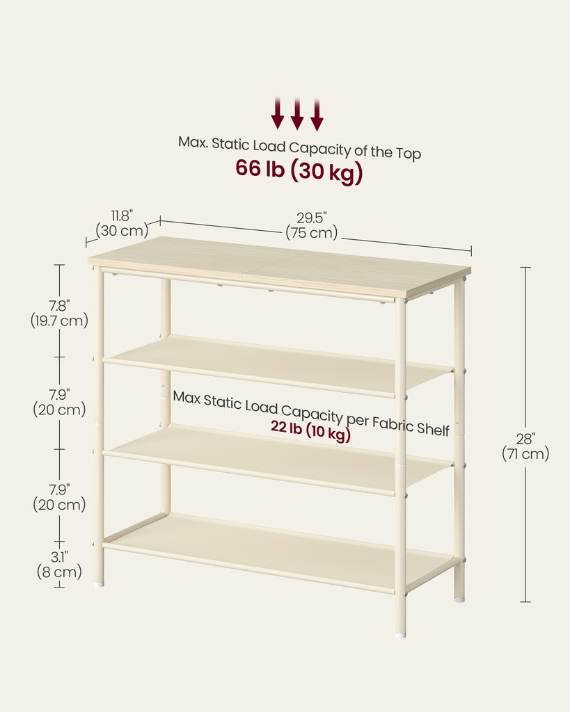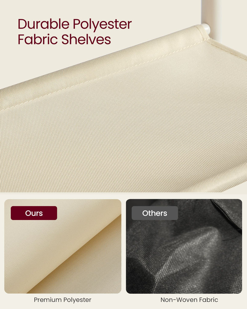 Max. Static Load Capacity per Fabric Shelf: 22 lb (10 kg)