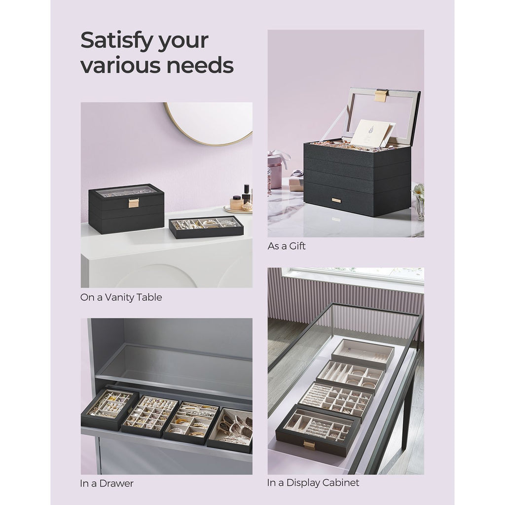 4-Tier Stackable Jewelry Trays with Glass Lid
