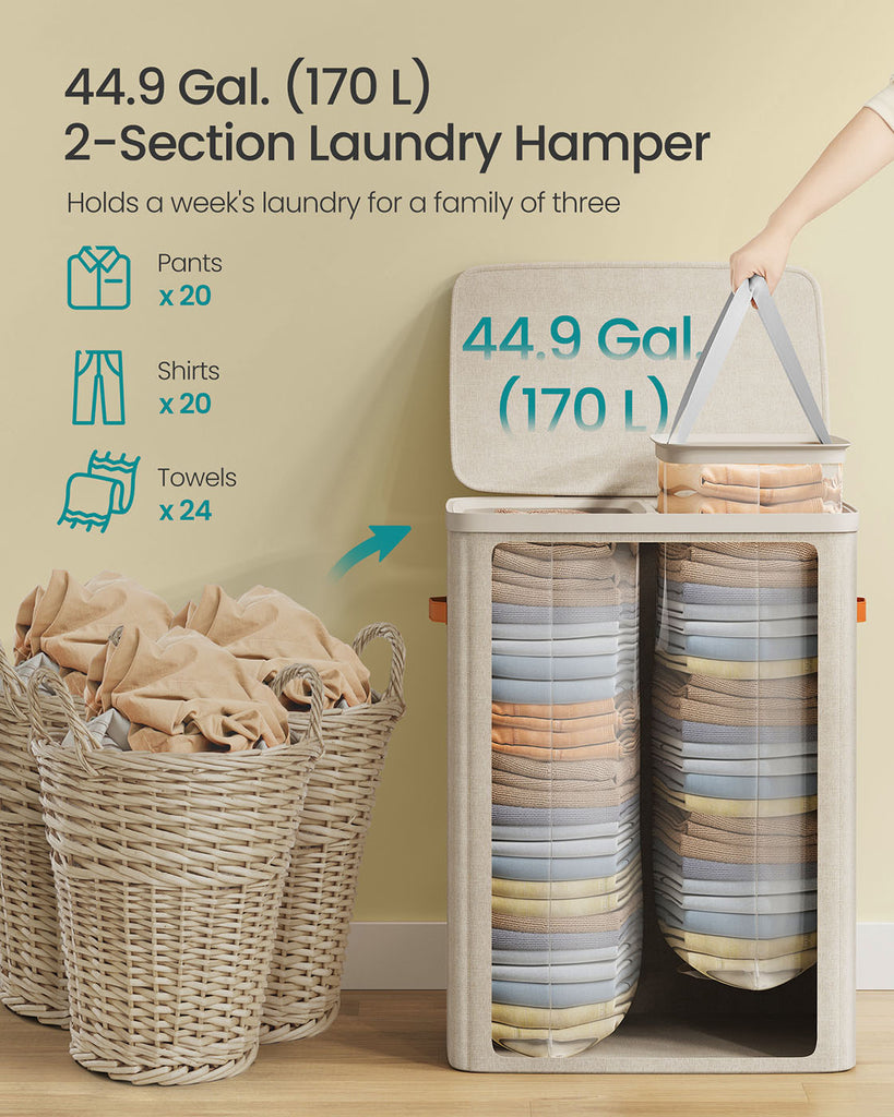 44.9 Gal. Laundry Hamper with Lid and Handles