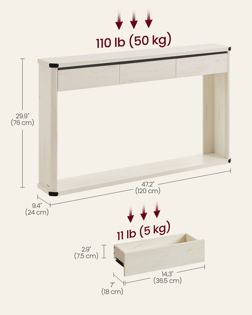 Product Size: 9.4"D x 47.2"W x 29.9"H (24 x 120 x 76 cm)