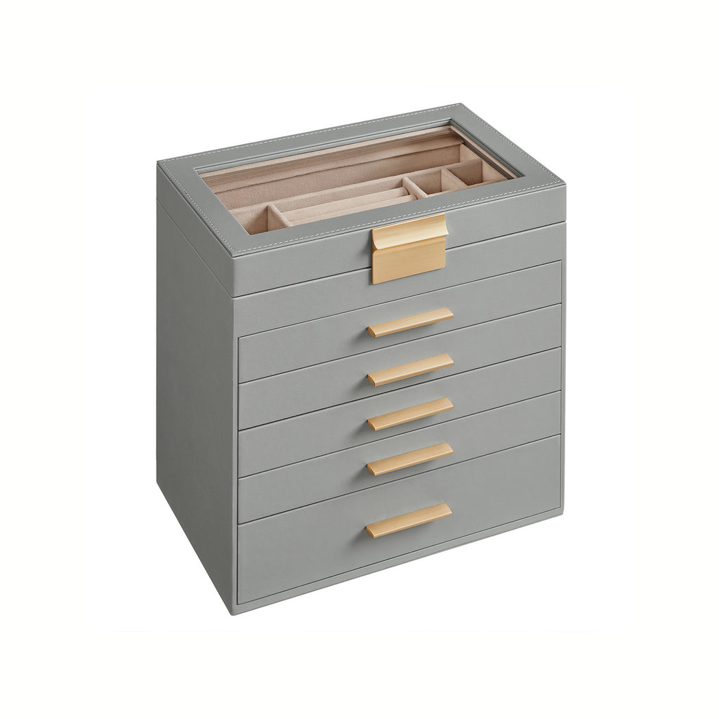 6-Layer Jewelry Box with Glass Lid for Big Jewelry