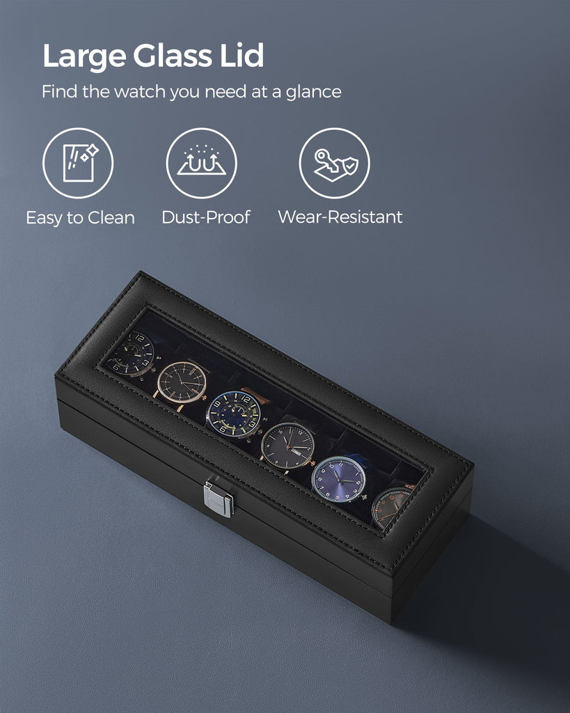 6-Slot Watch Box with Large Glass Lid