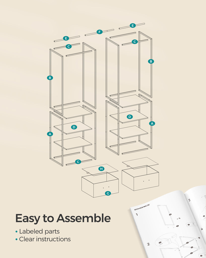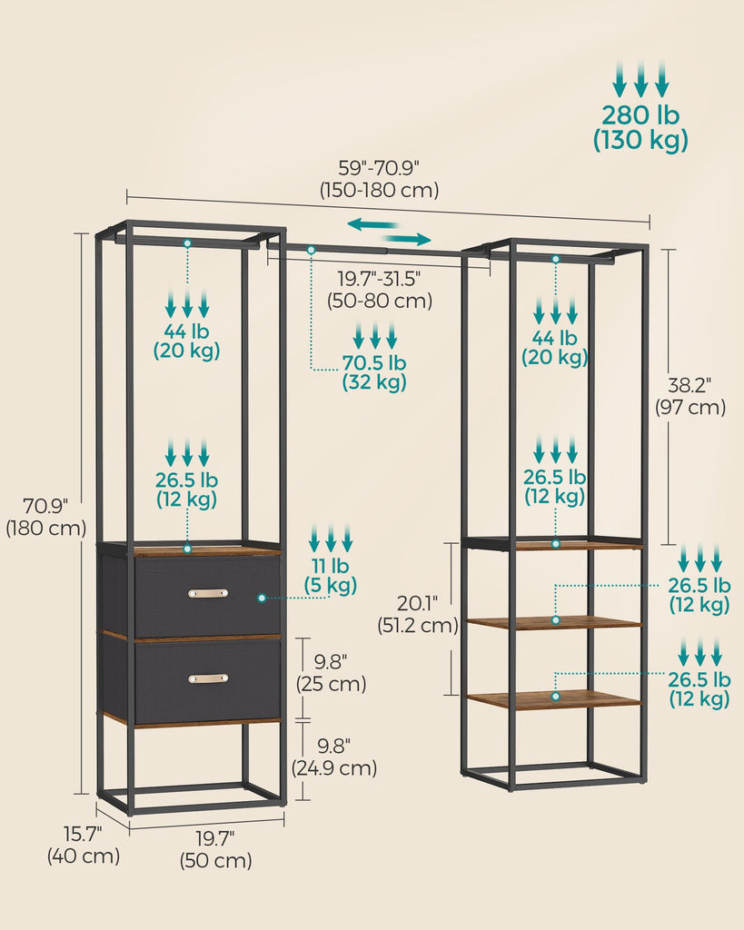 Max. Static Load Capacity of Each Hanging Rod: 44 lb (20 kg)