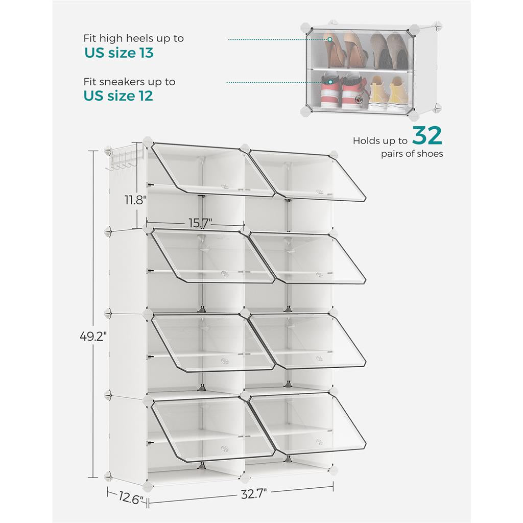 8 Cubes Shoe Organizer with Doors, Holds Up to 32 Pair of Shoes