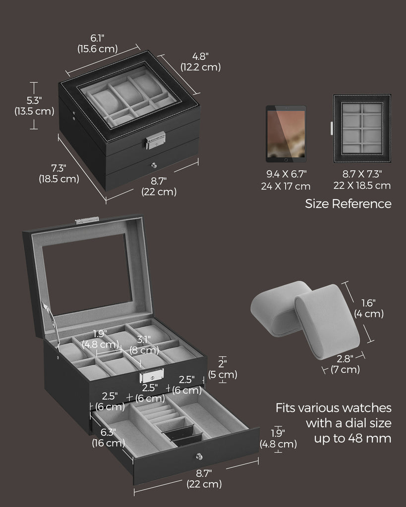 Product Size: 7.3D x 8.7W x 5.3H (18.5 x 22 x 13.5 cm)
