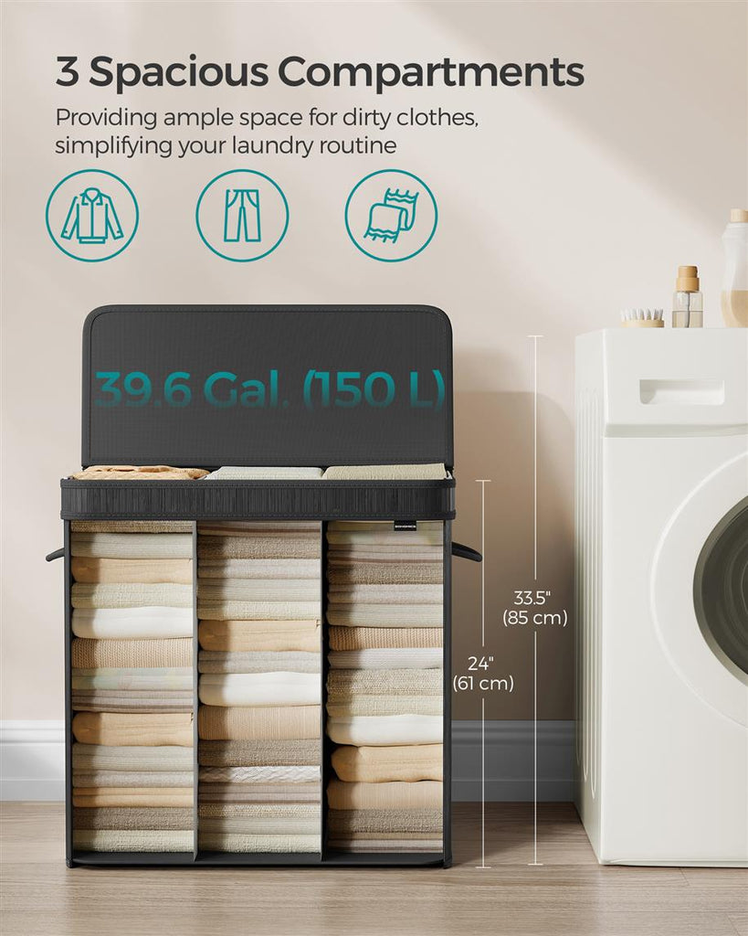 Bamboo Laundry Hamper with Lid, 39.6-Gallons