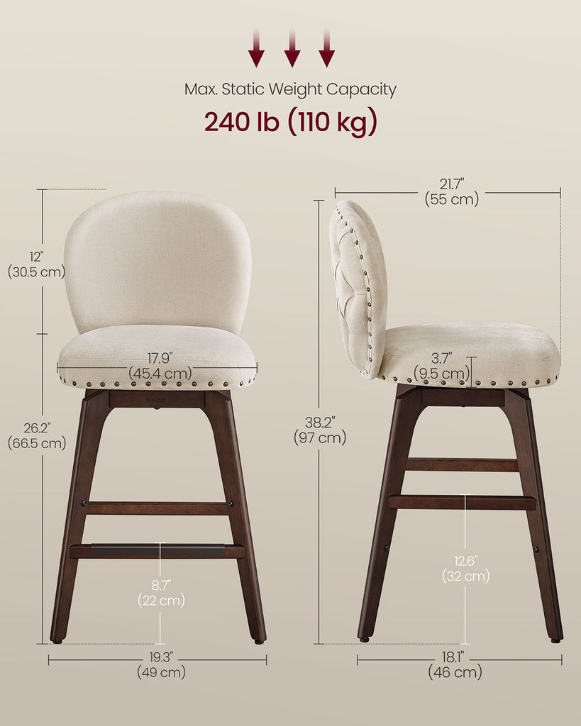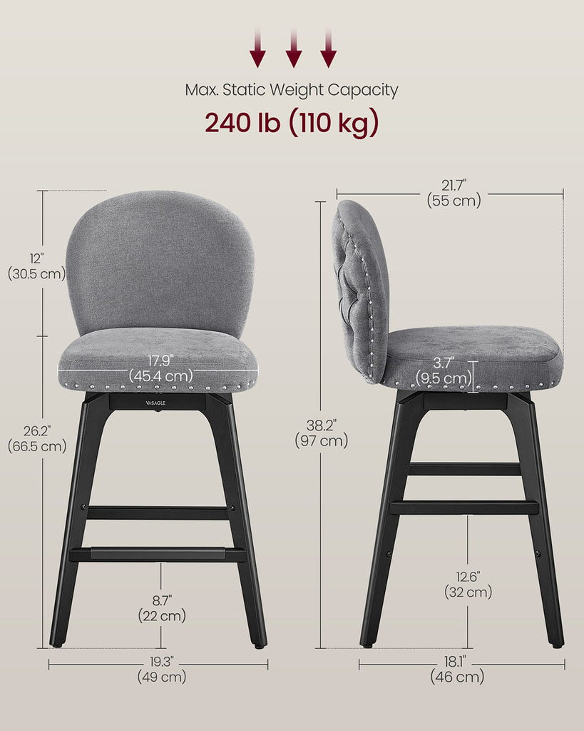 Max. Static Weight Capacity per Chair: 240 lb (110 kg)