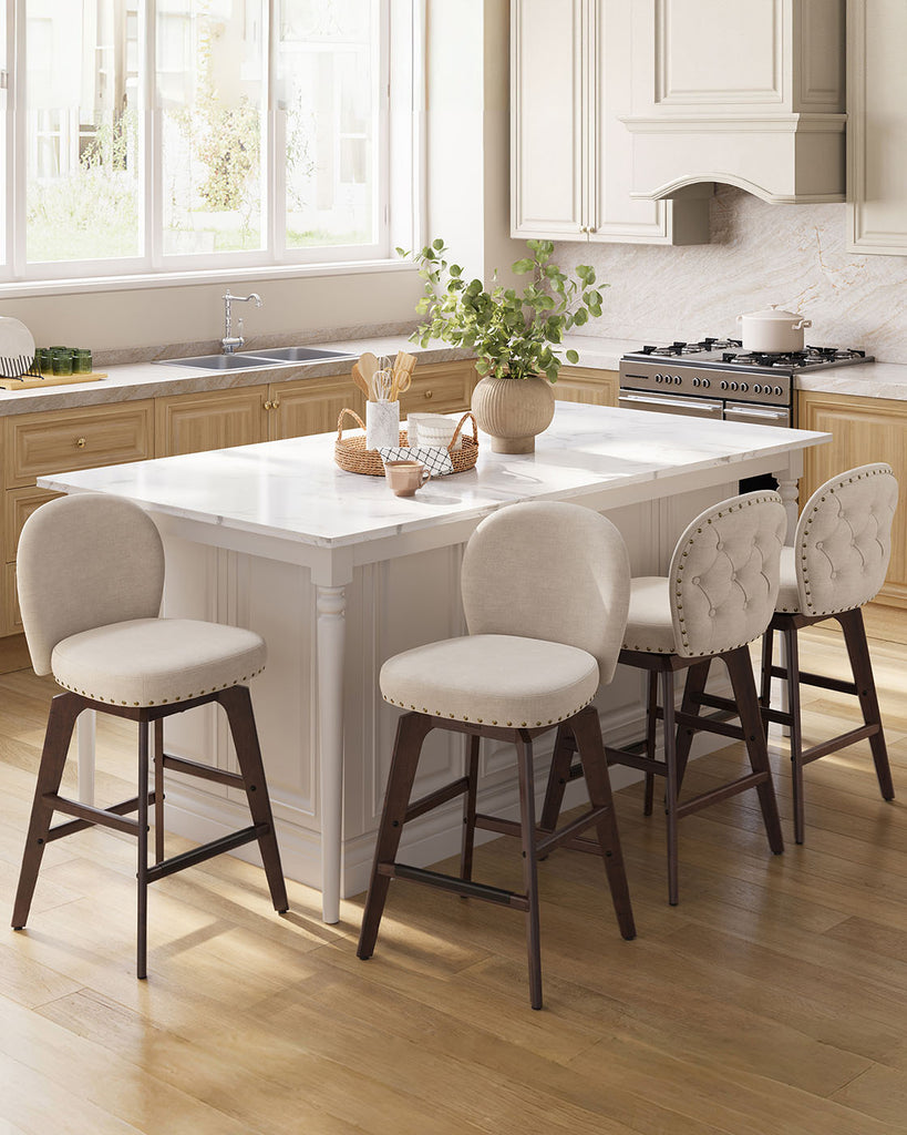 Material: Rubberwood, Plywood, Steel, Foam, Chenille Fabric