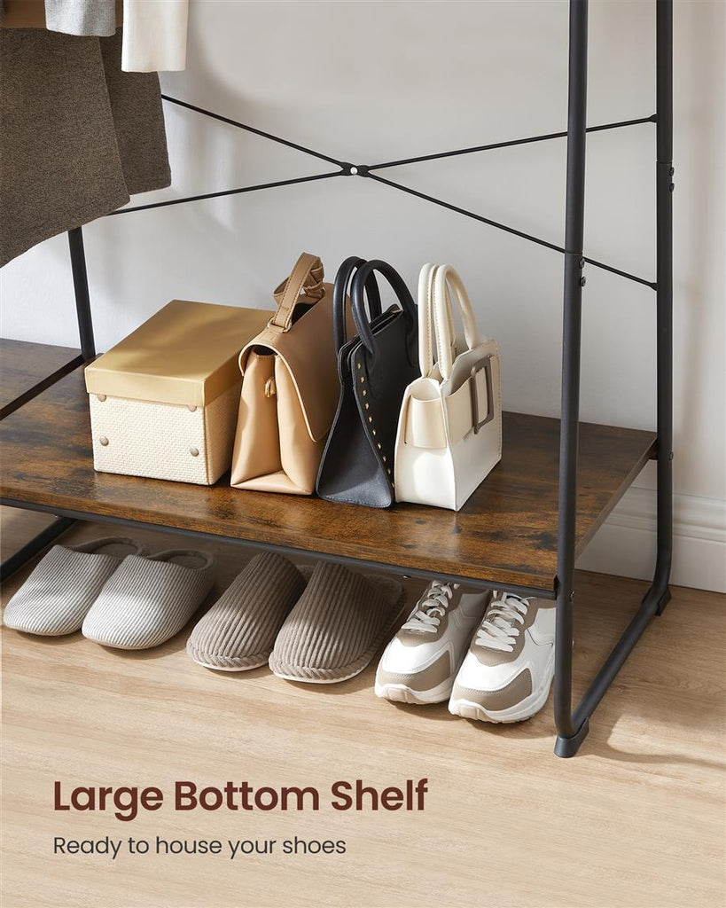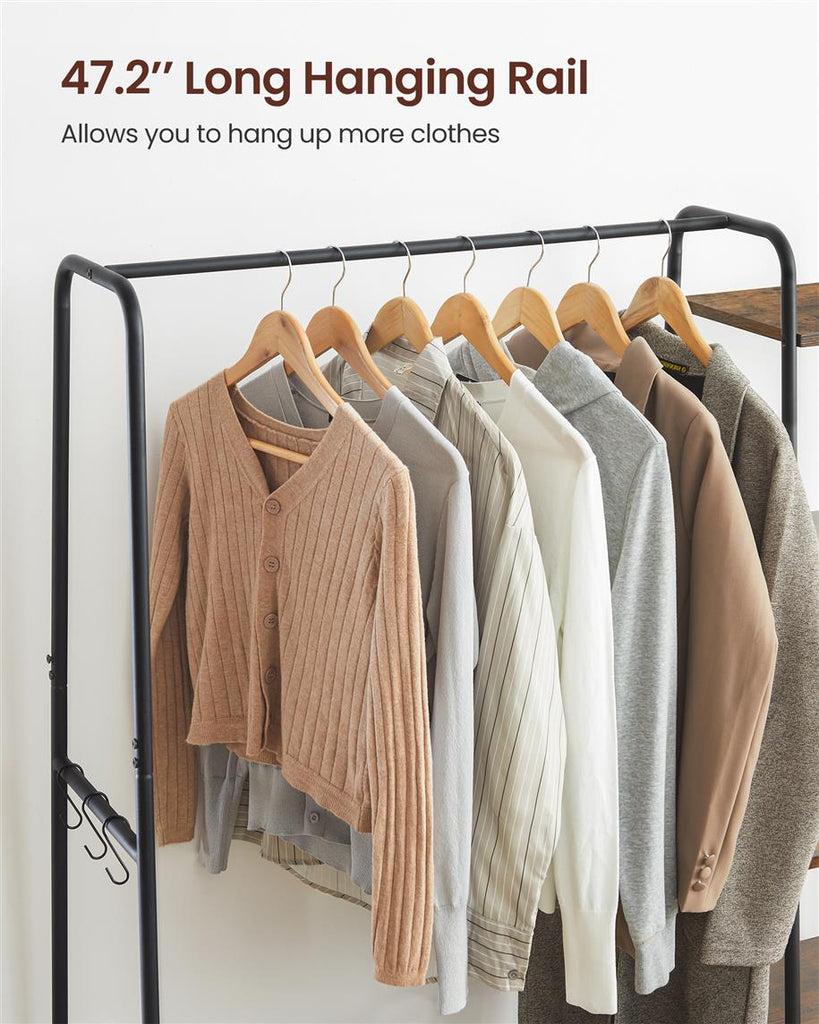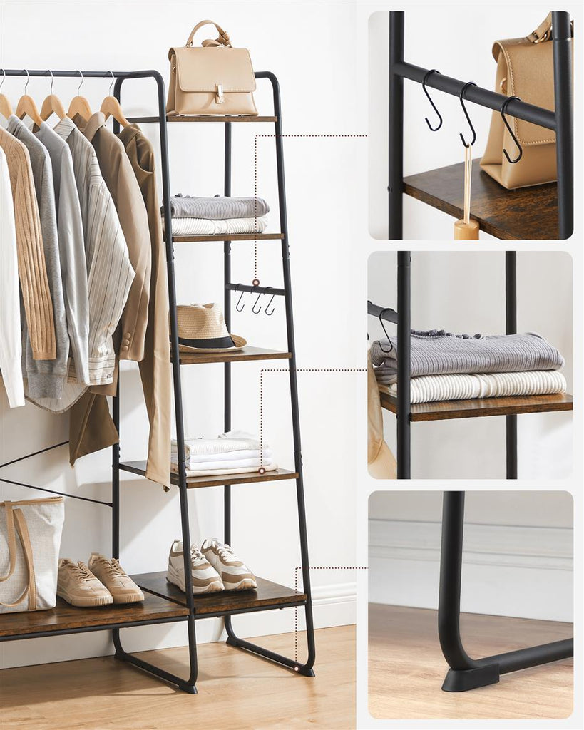 Clothes Rack with Shoe Shelf, 5-Tier Storage Rack, 6 Side Hooks