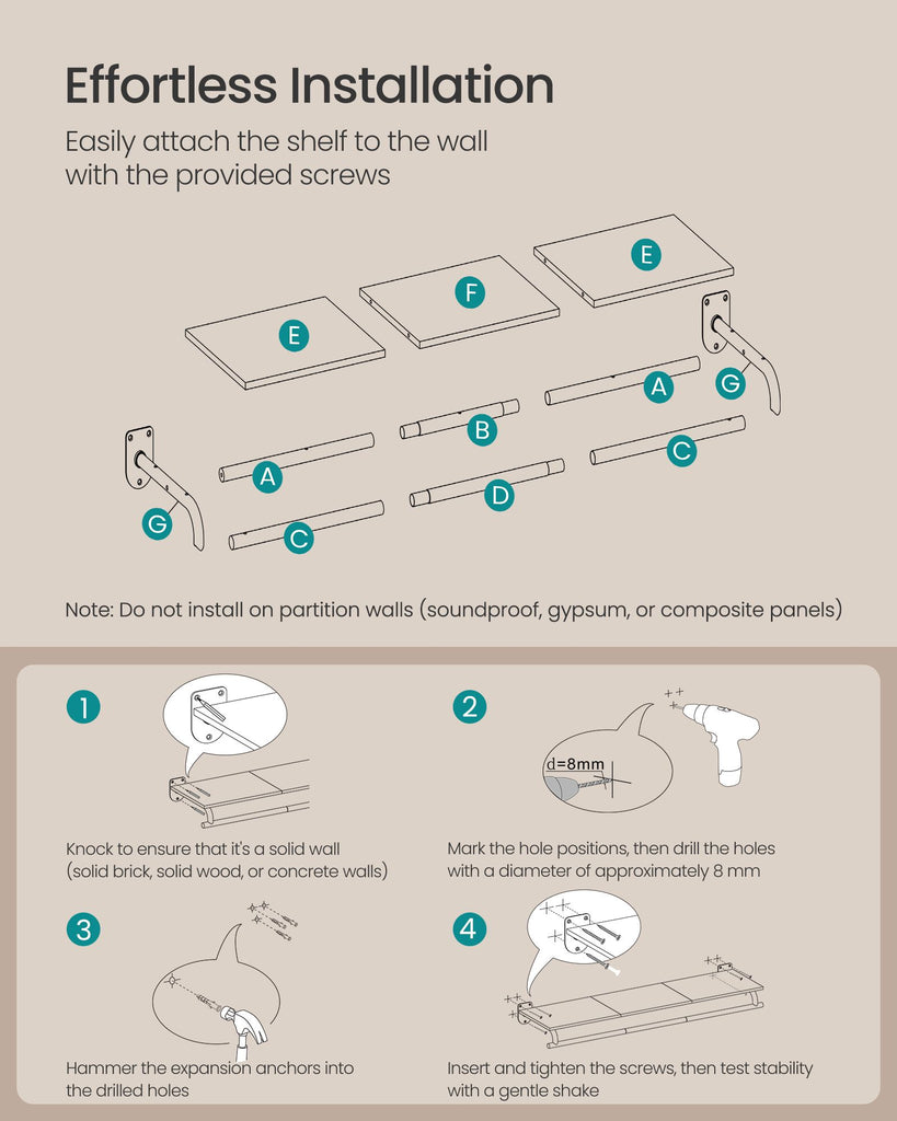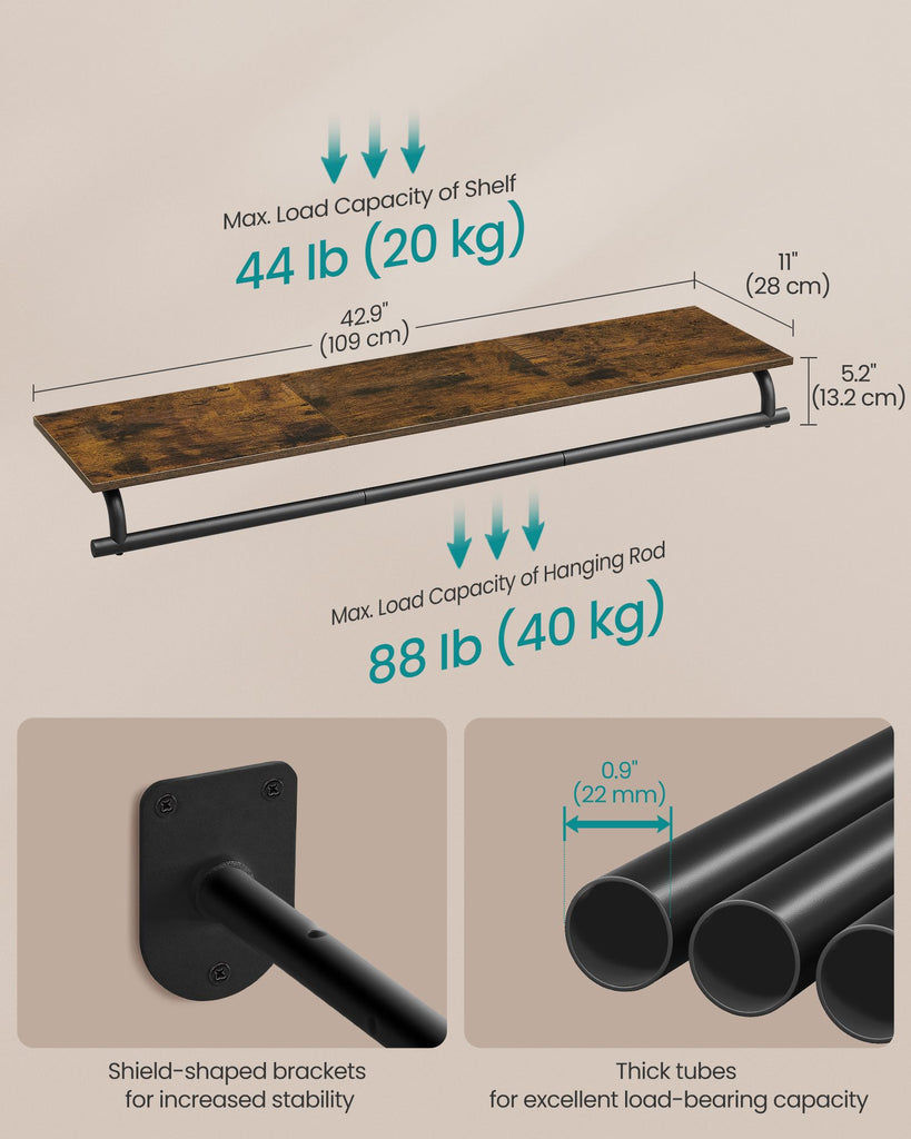 Max. Static Load Capacity of Hanging Rod: 44 lb (20 kg)