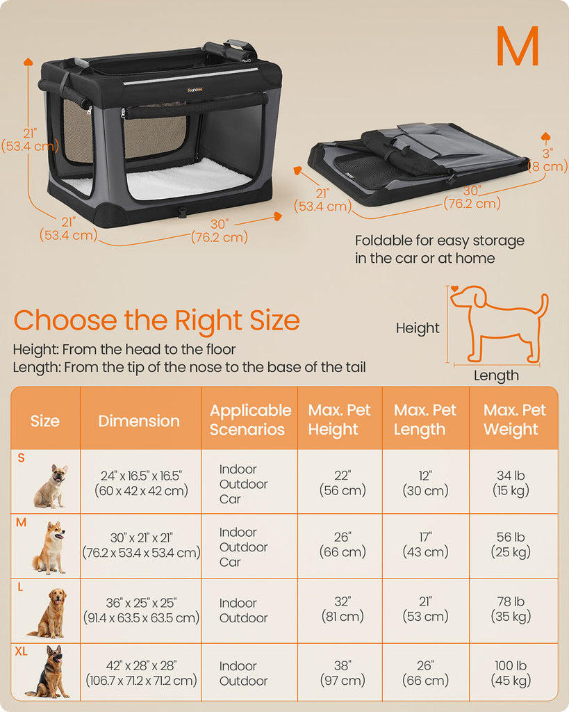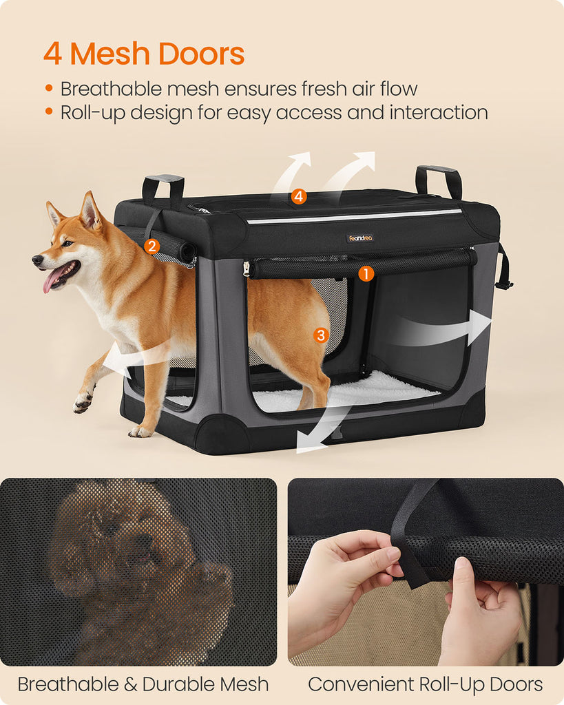 Collapsible Dog Crate 30-Inch 4 Mesh Doors Handles Storage Pocket