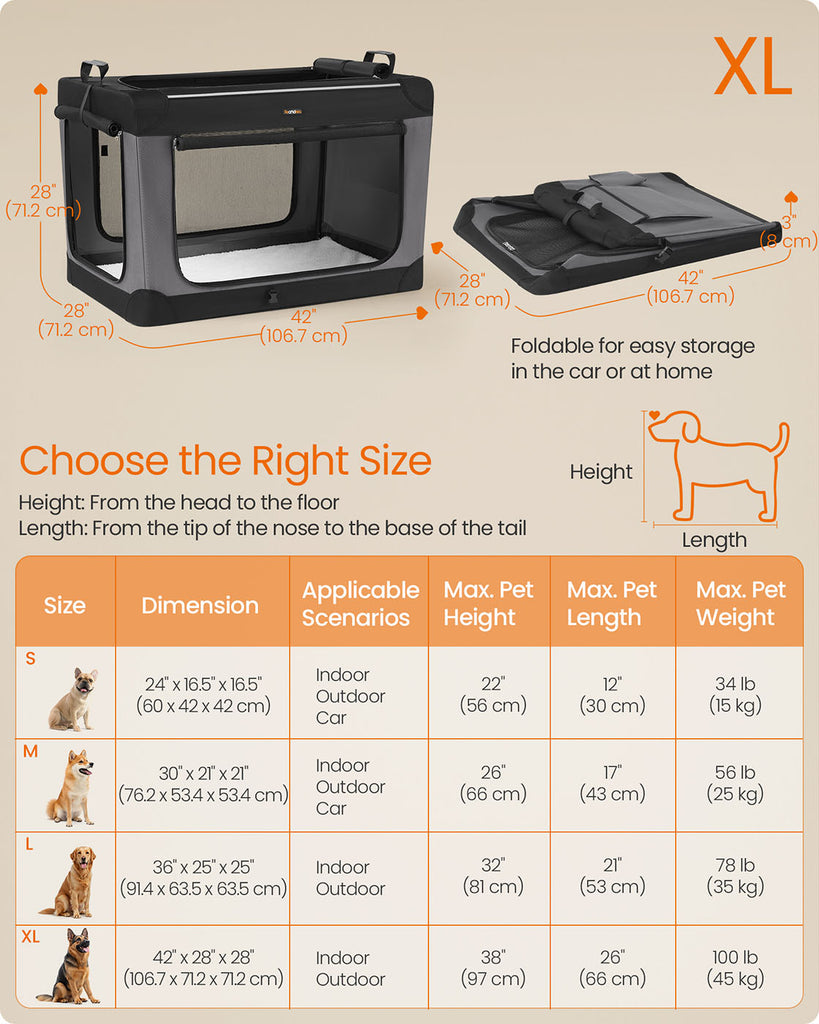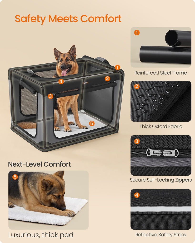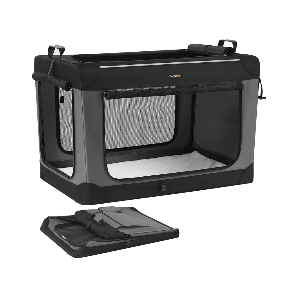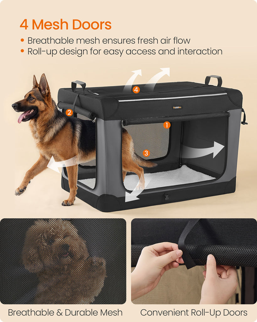 Collapsible Dog Crate 42-Inch 4 Mesh Doors Handles Storage Pocket Ink Black