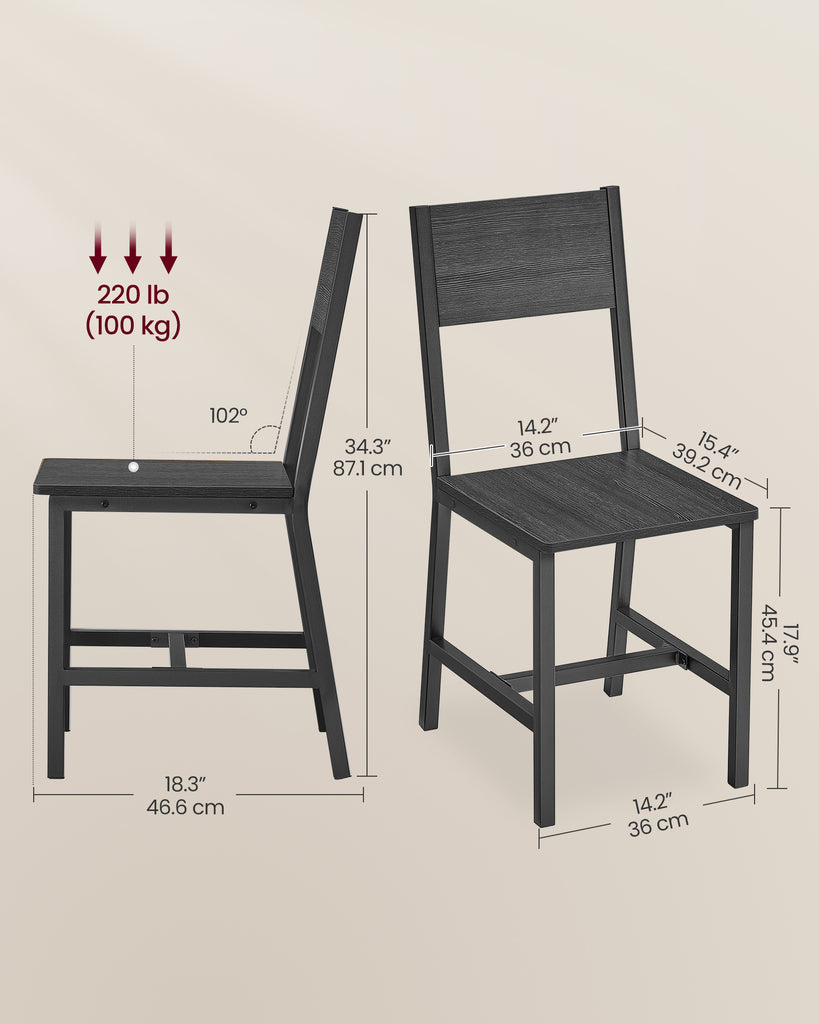Max. Static Load of Each Chair: 220 lb (100 kg)