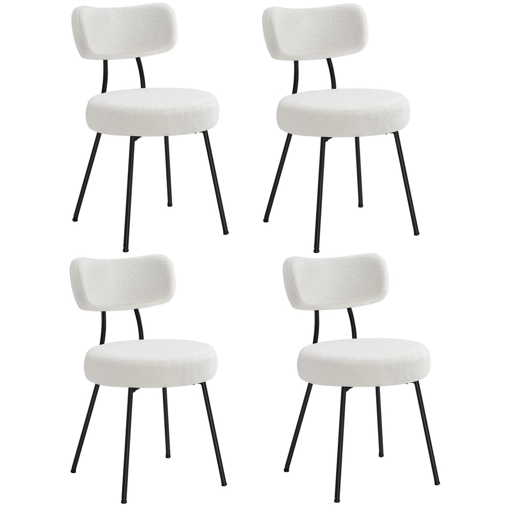 Luxurious Comfort, Redefined Elevate your dining experience with these modern dining chairs, covered with ultra-soft teddy fleece that feels like a warm hug. Paired with a thick cushion and a wide backrest, they offer a cozy, inviting feel that makes every meal a delight. Style Meets Durability Designed to impress, these accent chairs feature a sleek, rounded silhouette that effortlessly complements your decor. Built with a reinforced steel frame and adjustable feet for stability, theyre as sturdy as they are stylish. Bring home the perfect blend of form and function, and enjoy dining in elegance every day. Specifications: - Color: Cream White - Material: Foam, Teddy Fleece, Plywood, Steel - Product Size per Chair: 23.2"D x 19"W x 32.4"H (59 x 48.5 x 82.5 cm) - Overall Product Weight: 44.9 lb (20.4 kg) - Max. Static Weight Capacity: 265 lb (120 kg) Package Contents: - 4 x Dining Chair - 2 x Instructions