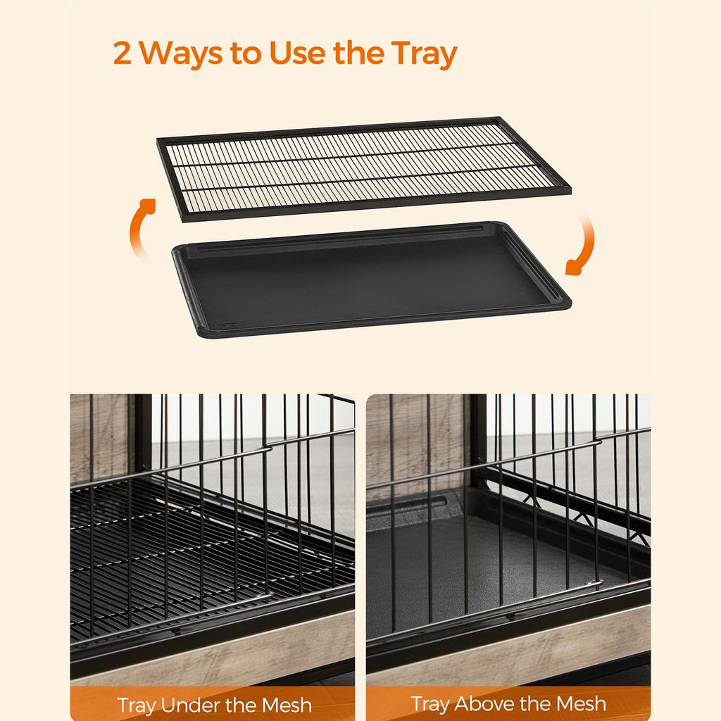 Dog Crate Furniture, Side End Table, Modern Kennel for Dogs Indoor up to 45 lb, Heavy-Duty Dog Cage with Multi-Purpose Removable Tray, Double-Door Dog House, Greige