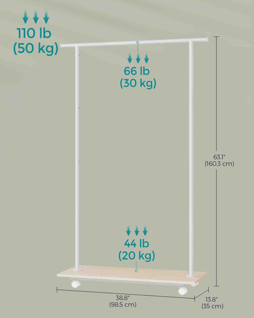 Max. Static Load Capacity of Top Rod: 66 lb (30 kg)
