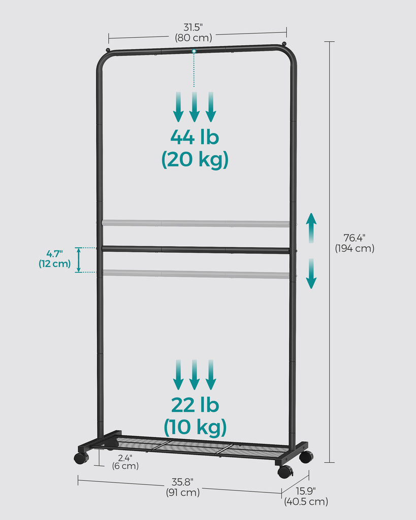 Max. Static Load Capacity of Bottom Shelf: 22 lb (10 kg)