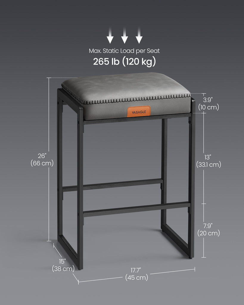 Max. Static Load Capacity per Stool: 265 lb (120 kg)