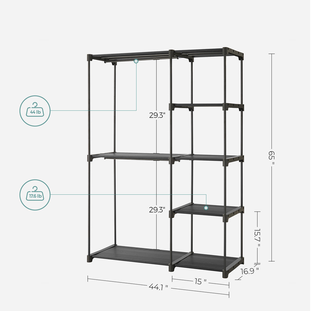 Freestanding Closet Organizer with Shelves, Hanging Rods