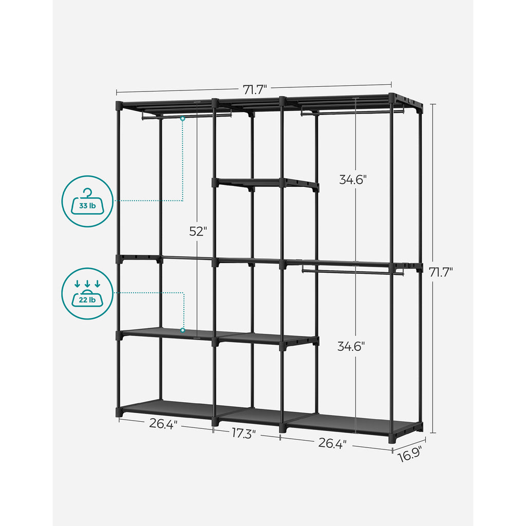 Freestanding Closet Organizer with Shelves, Hanging Rods