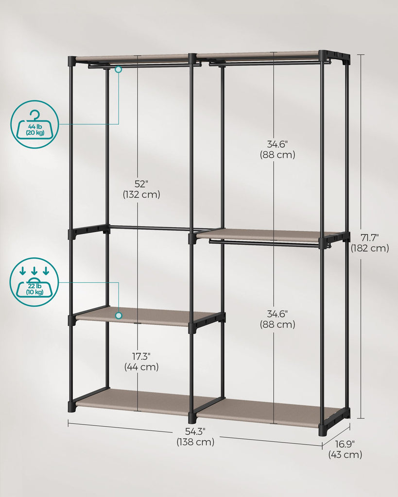 Freestanding Portable Closet with Shelves, Hanging Rods