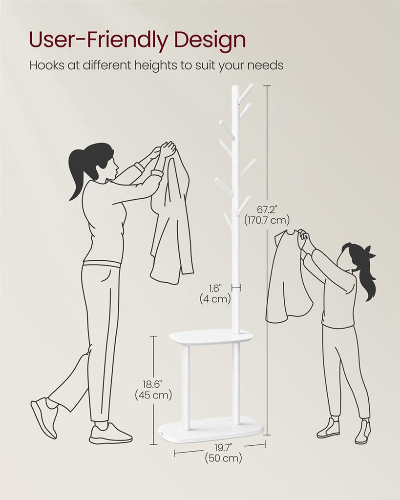 Hall Coat Tree with 8 Hooks and Storage Shelf
