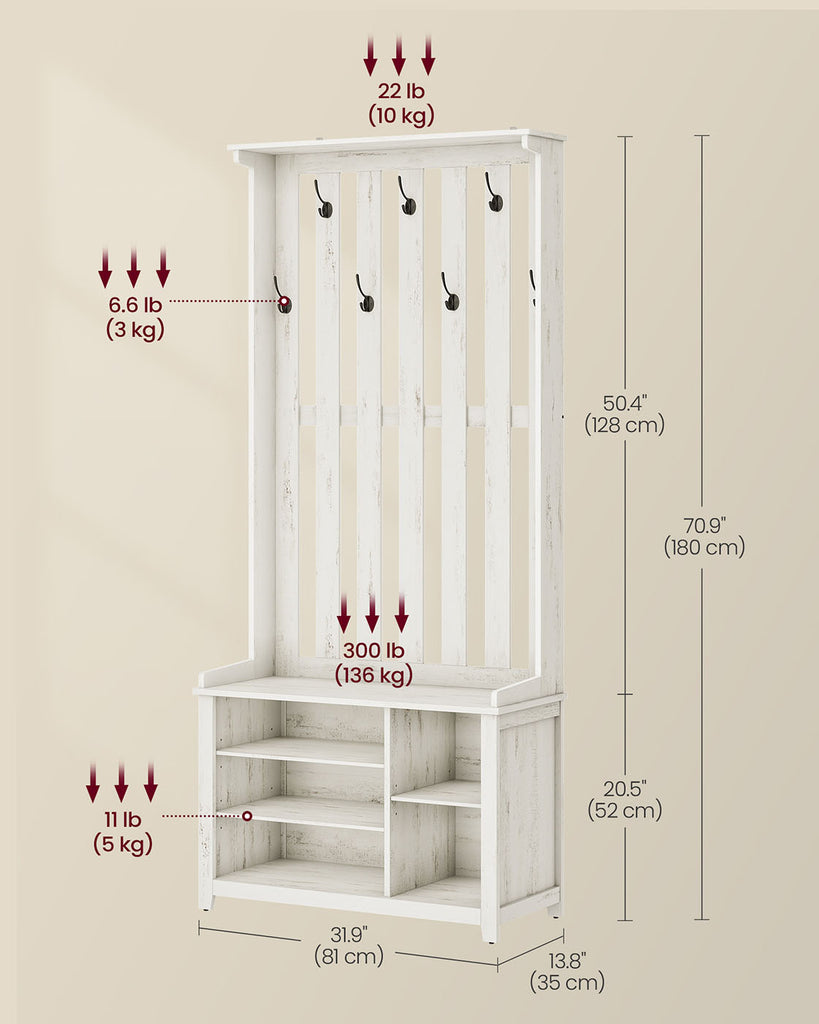 Max. Static load capacity per Shoe Shelf: 11 lb (5 kg)