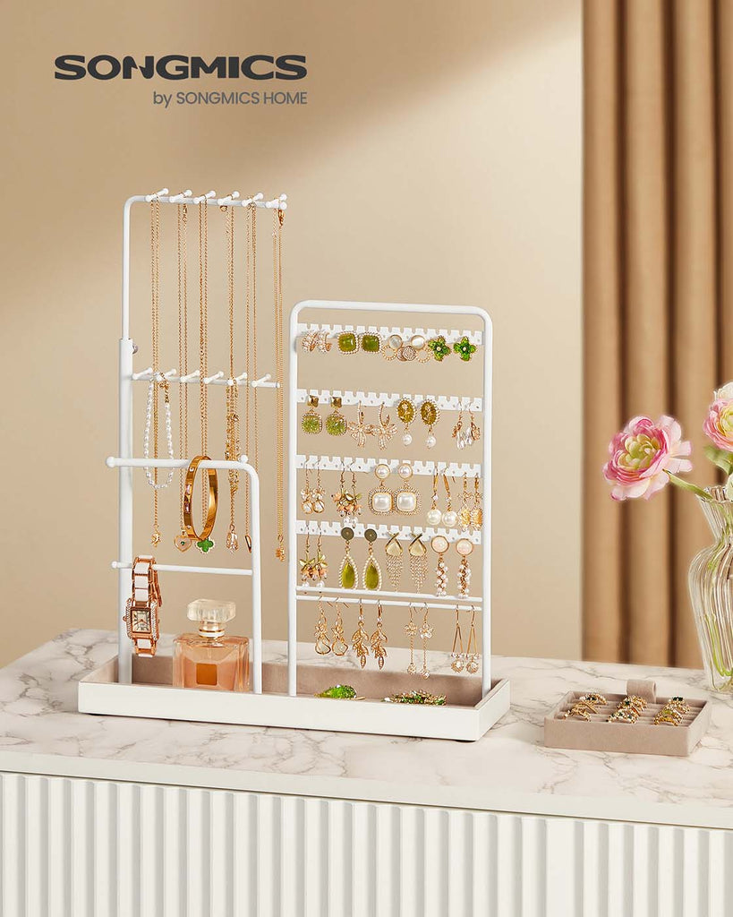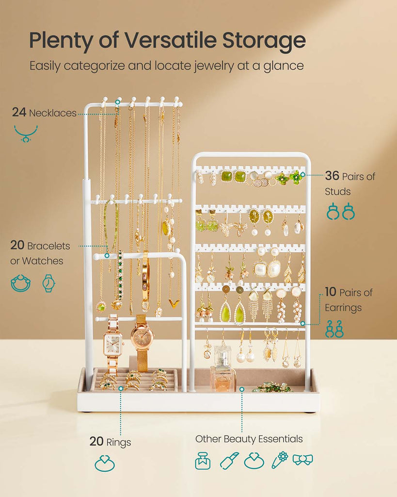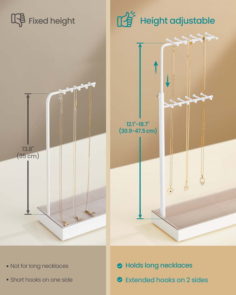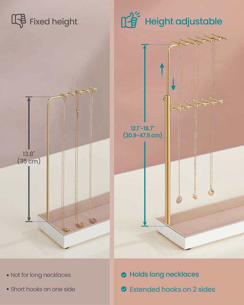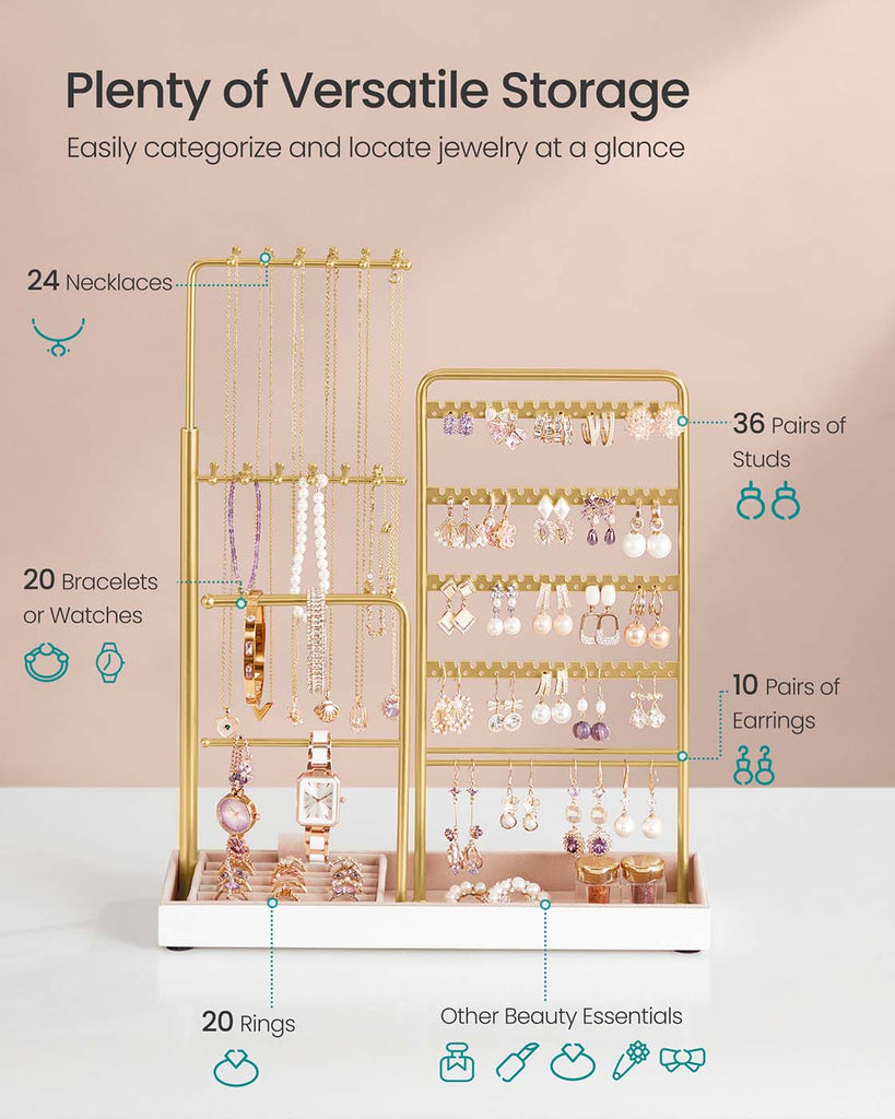 Jewelry holder with metal frame velvet tray and adjustable stand