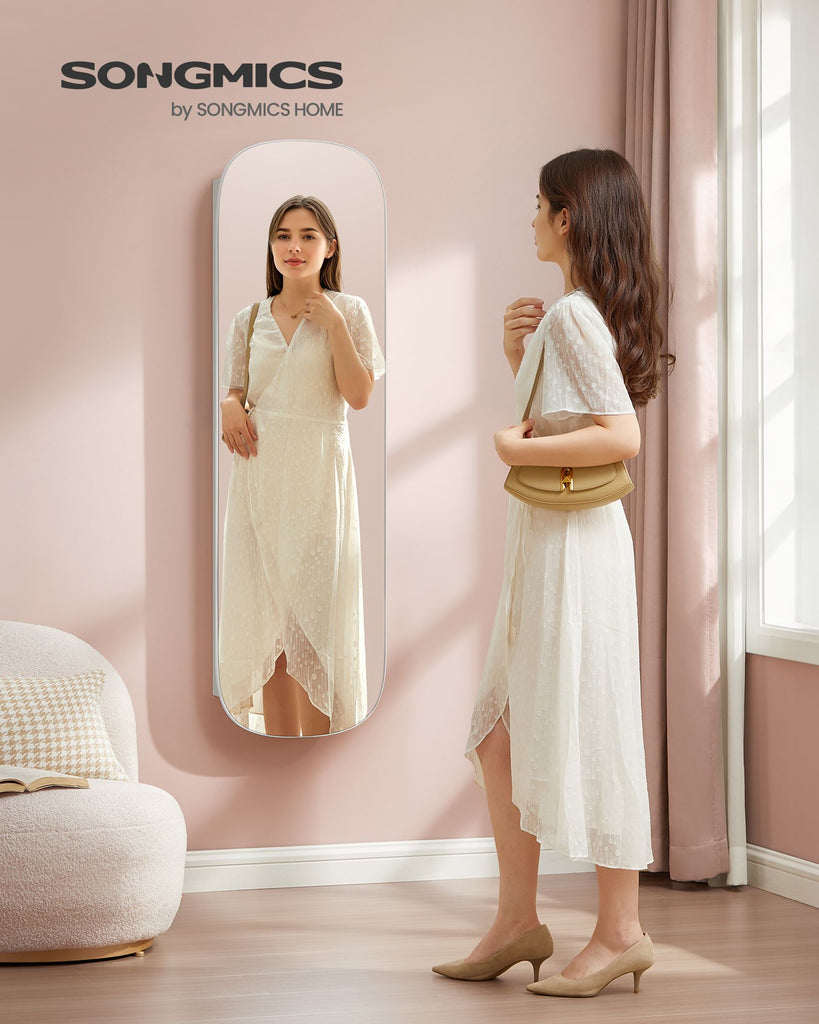 Specifications: - Color: White, Greige - Material: MDF (Medium Density Fiberboard), Velvet, Glass - Product Size: 3.9"D x 16.5"W x 55"H (10 x 42 x 140 cm) - Product Weight: 29.8 lb (13.5 kg) Package Contents: - 1 x Wall-Mounted Jewelry Cabinet - 1 x Accessory Kit - 1 x Instructions Notes: - The keys and accessory pack are inside the packaging box, which is within the white foam outside the cabinet; the door is not locked, so if its hard to open, just pull a little harder. - Do not install in damp environments to prevent deformation.
