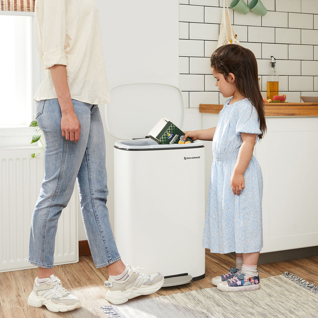 Kitchen Trash Garbage Can, Pedal Rubbish Bin 13.2 Gal (50L), with Plastic Inner Bucket, Hinged Lid, Soft Closure, Odor Proof and Hygienic, White
