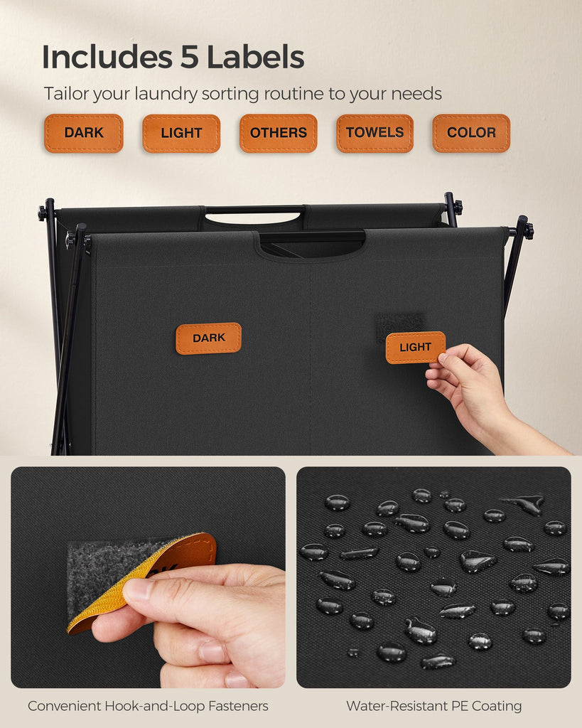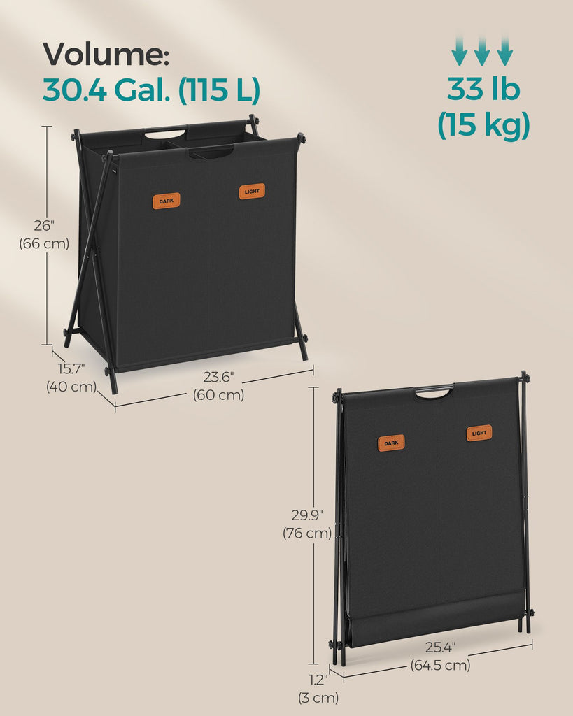 Laundry Hamper 2 Sections with Collapsible X-Frame, 30.4 Gal.