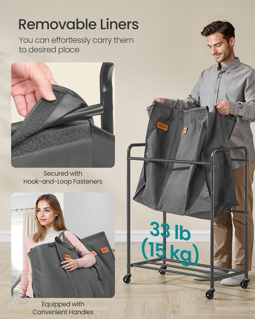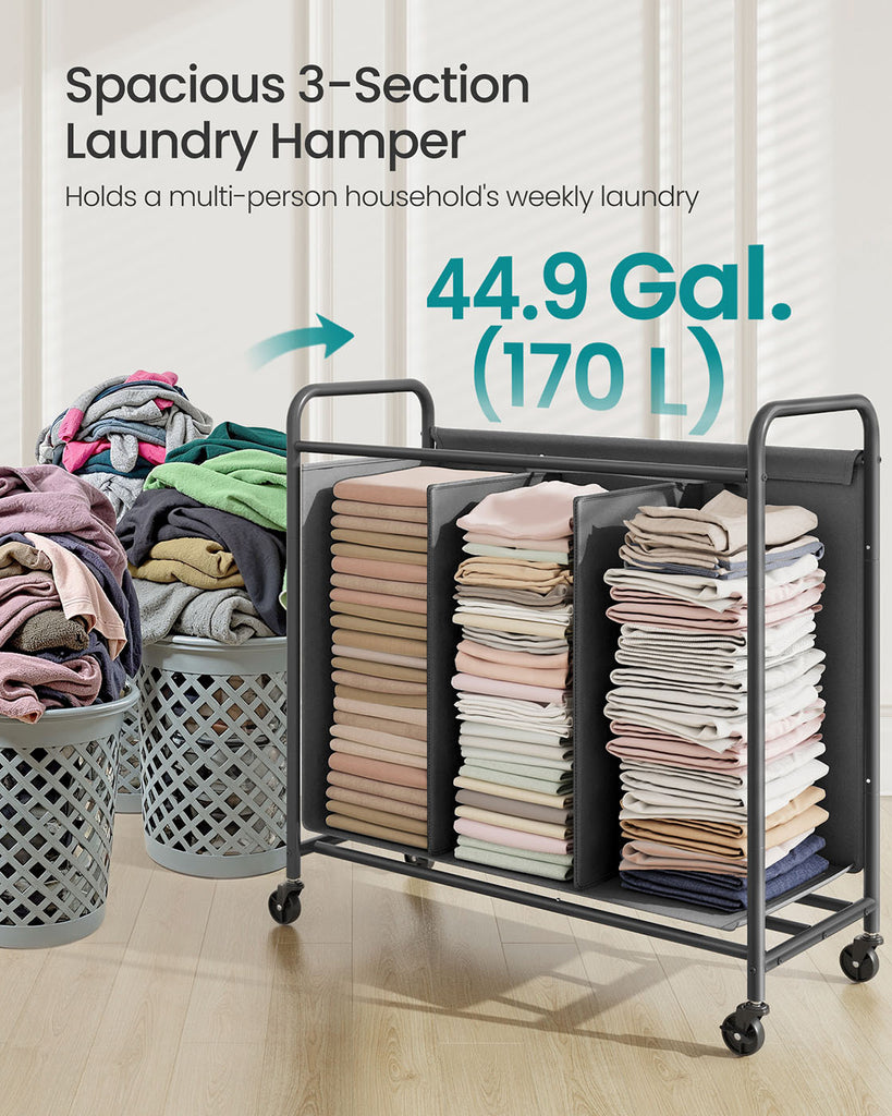 Laundry Hamper with Wheels 3-Section 44.9 Gal. Slate Gray
