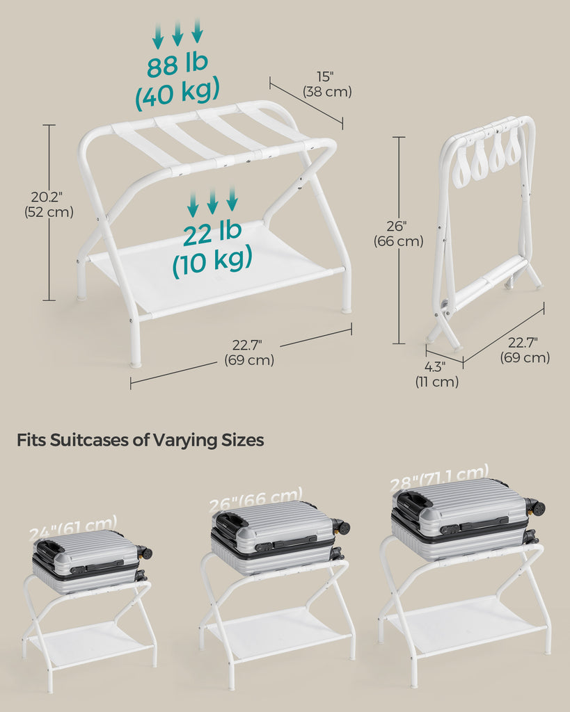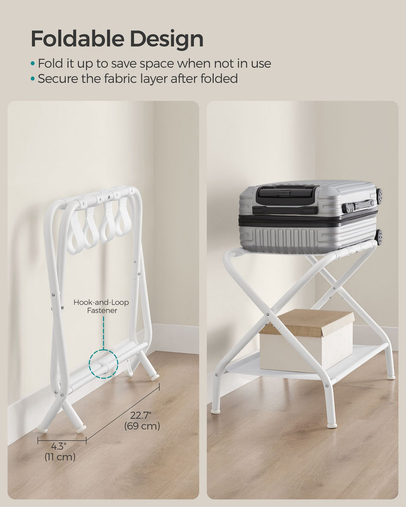 Luggage Rack with Fabric Storage Shelf Cloud White