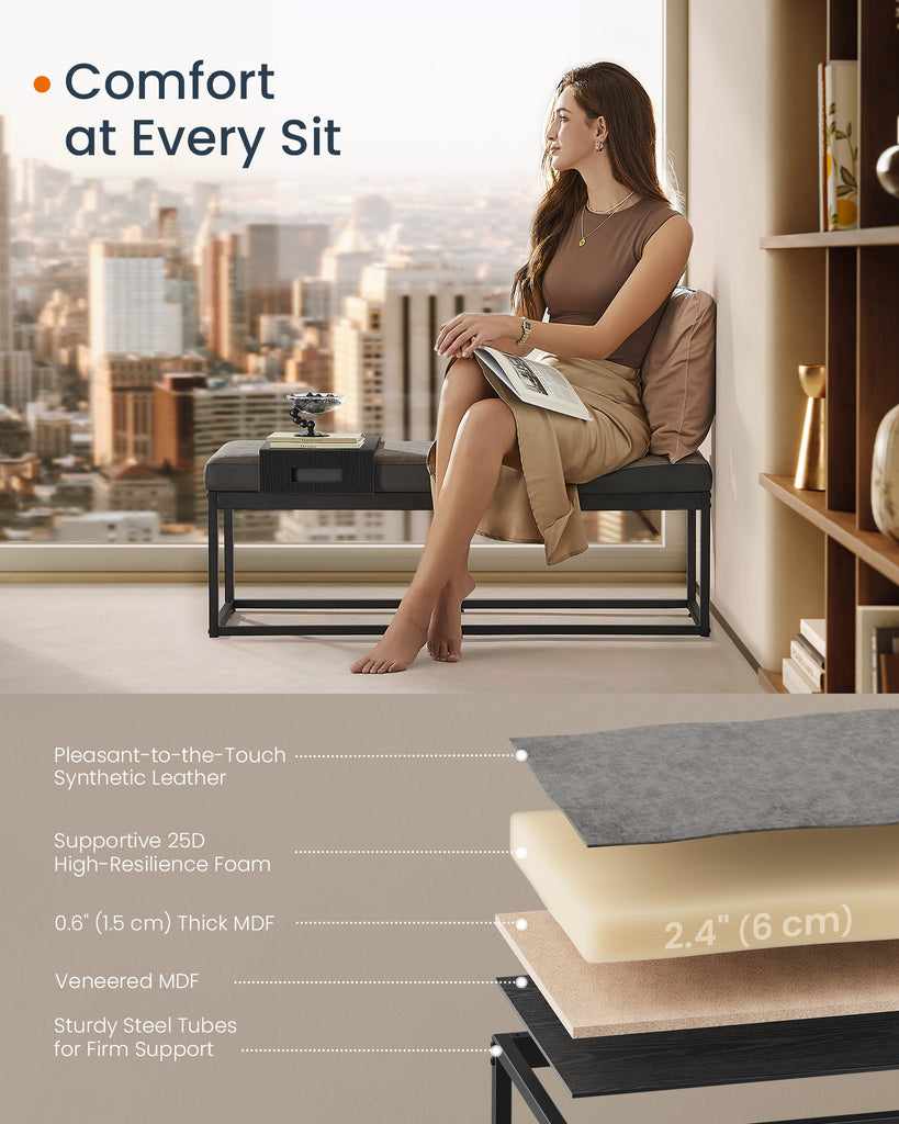Material: Steel, 25D High-Resilience Foam, PU (Polyurethane) Leather, MDF (Medium Density Fiberboard)