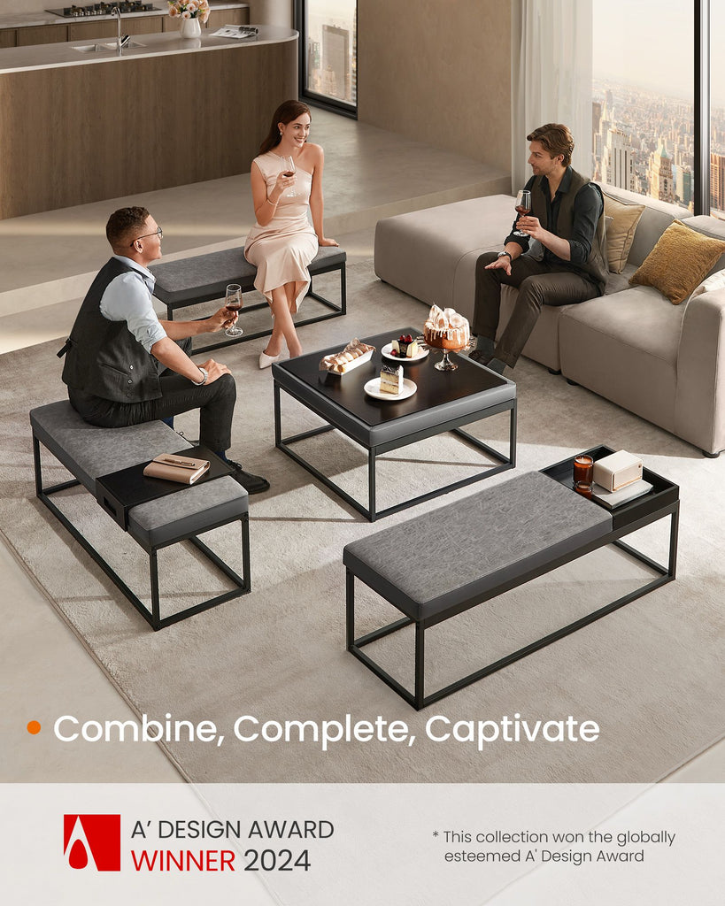 LUIZ Collection - Ottoman Bench with Small Shelf, Dove Gray