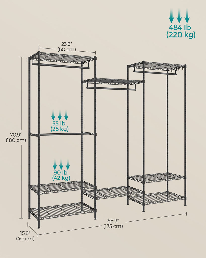 Product Size: 15.8"D x 68.9"W x 70.9''H (40 x 175 x 180 cm)