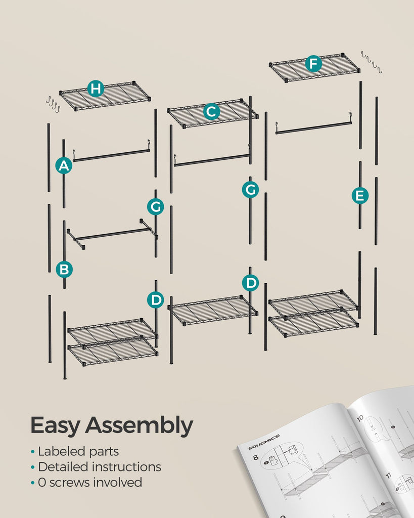Metal Portable Wardrobe Closet with Adjustable Wire Shelves