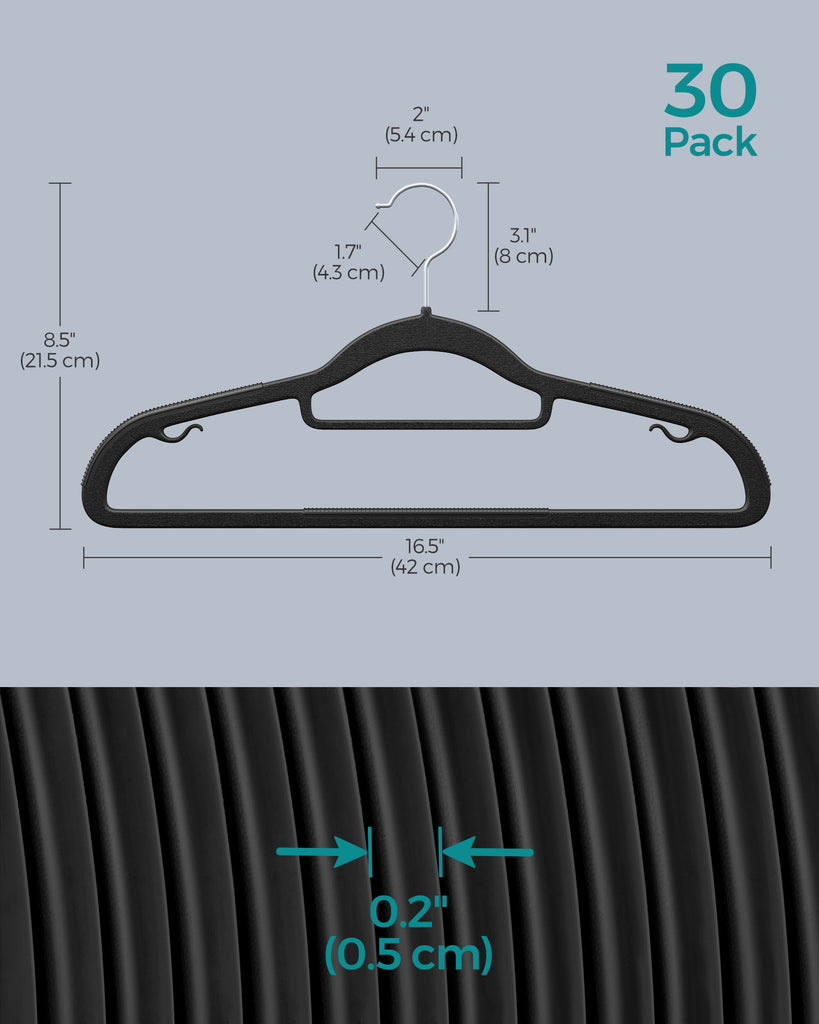 Total Weight of 30 Hangers: 5.7 lb (2.6 kg)