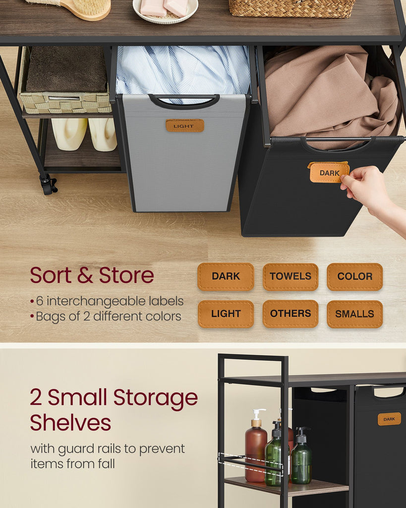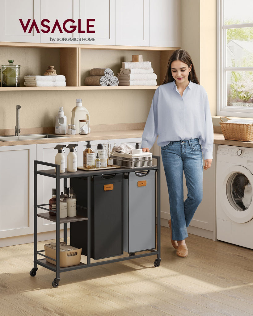 Rolling Laundry Hamper with 2 Compartments, 26.4 Gal. (100 L)