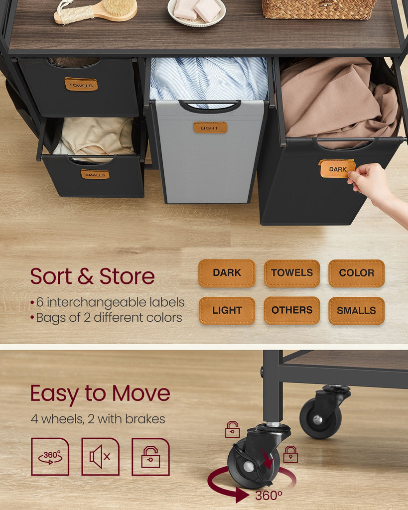 Rolling Laundry Hamper with 4 Compartments, 39.6 Gal. (150 L)