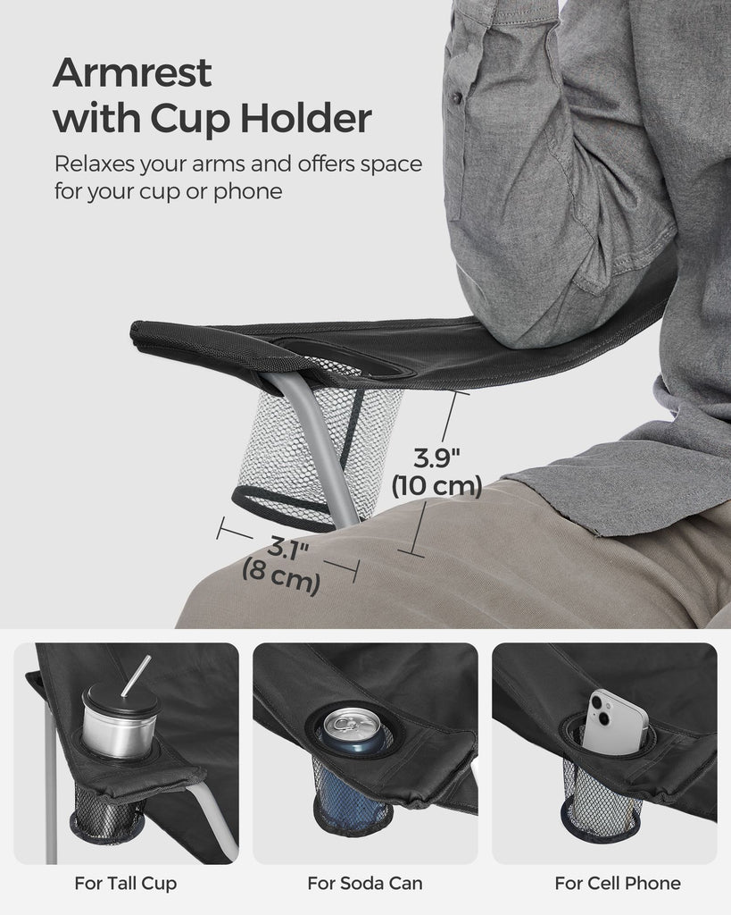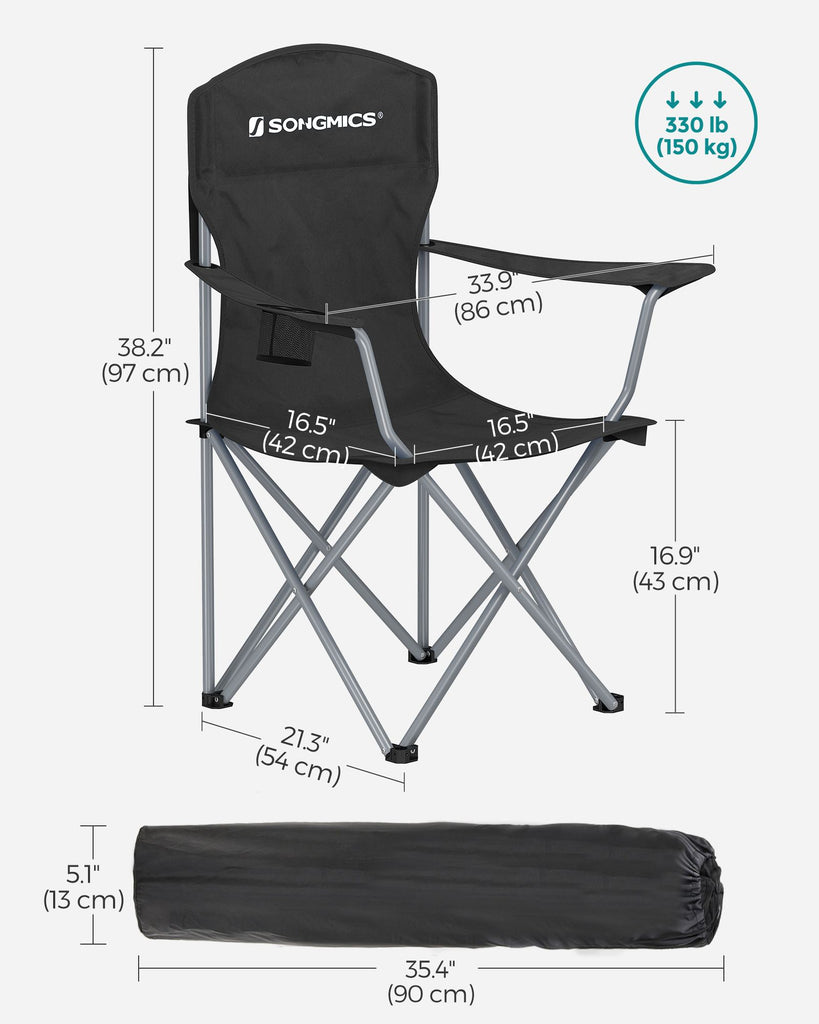 Set of 2 Folding Camping Chairs Max. Capacity 330 lb Ink Black