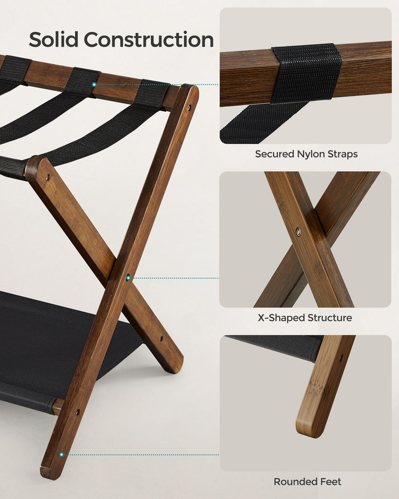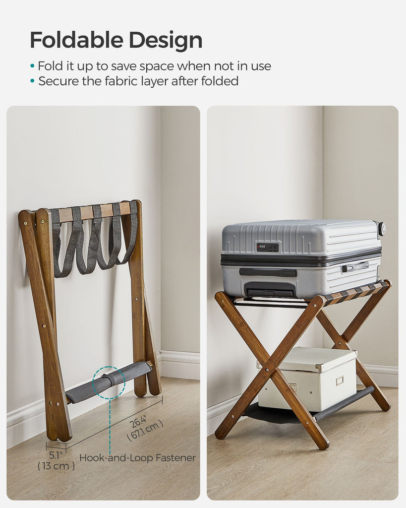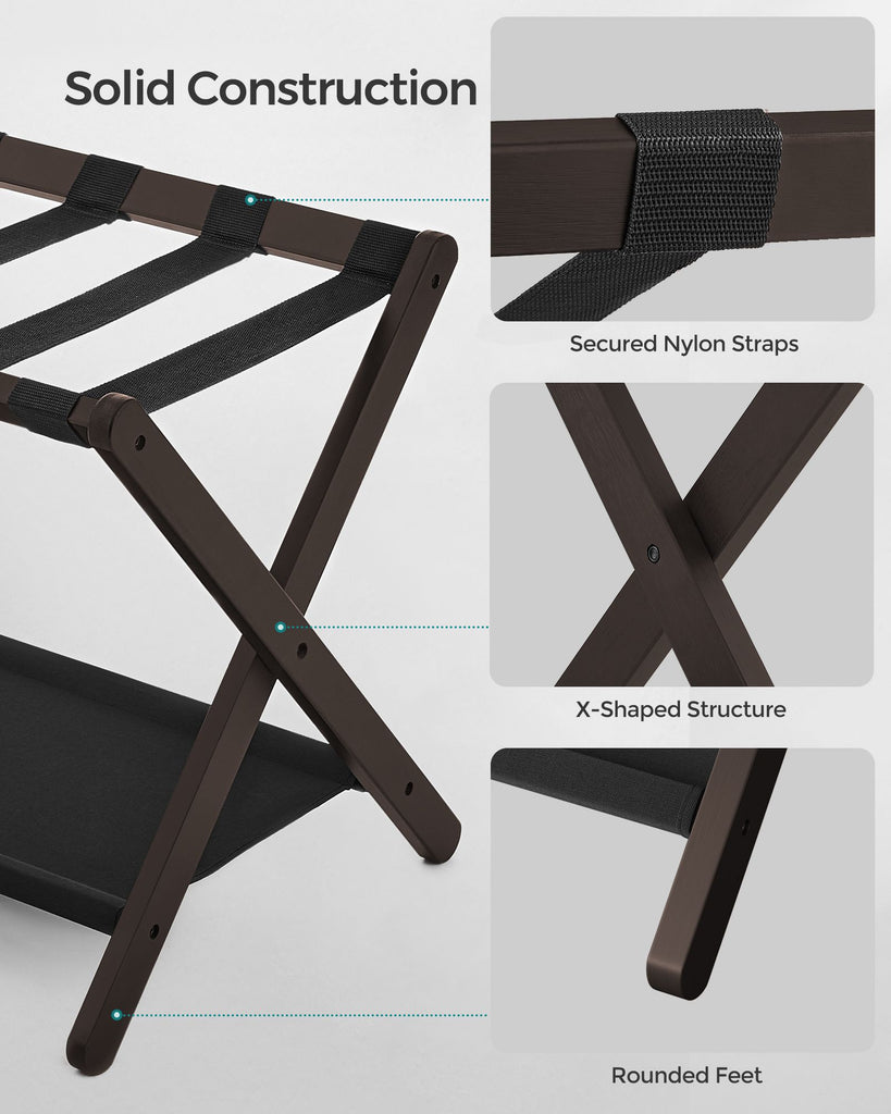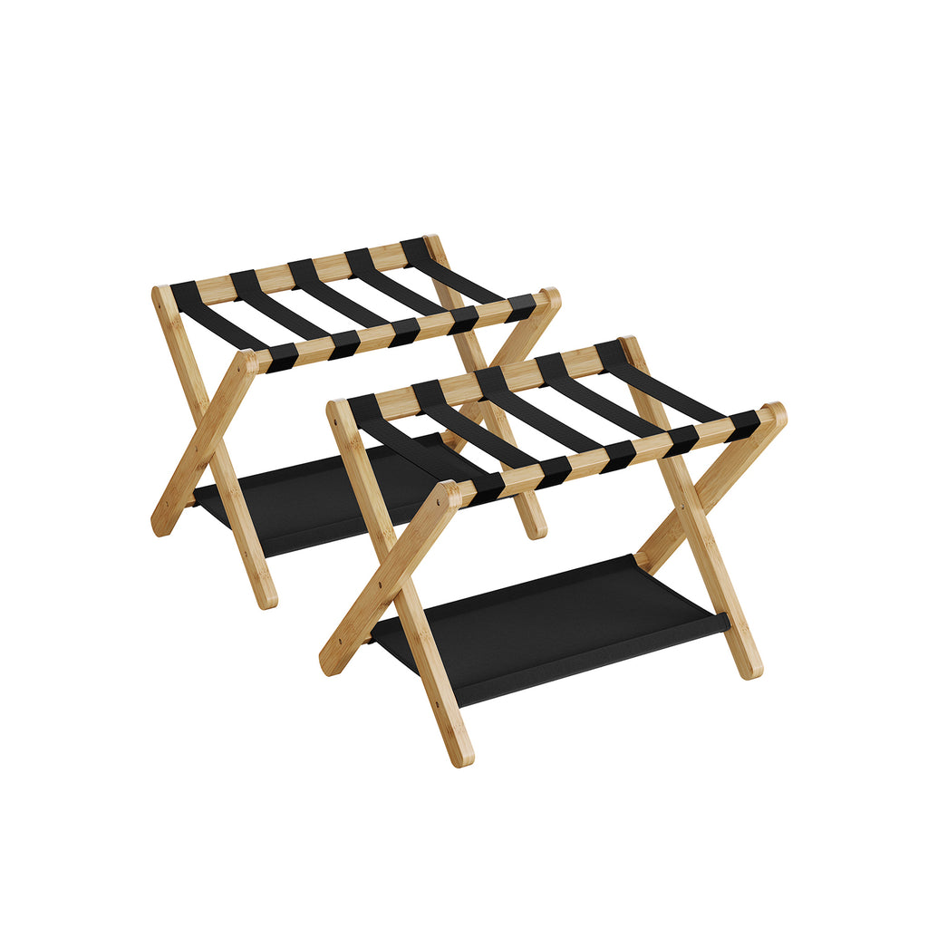 Set of 2 Folding Luggage Rack with Storage Shelf