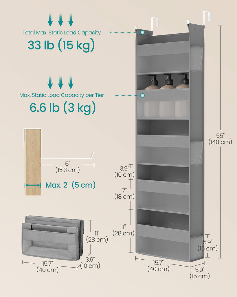 Max. Total Static Load Capacity of Each Organizer: 33 lb (15 kg)