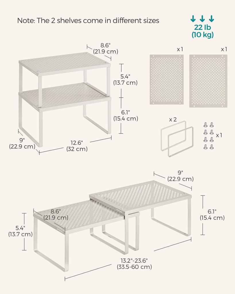 Load Capacity of Each Shelf: 22 lb (10 kg)