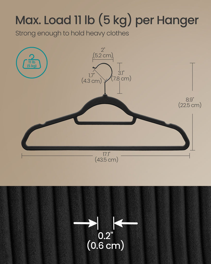 Total Weight of 50 Hangers: 8.6 lb (3.9 kg)