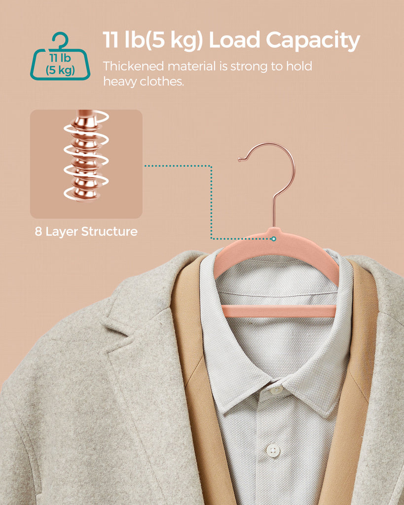 Set of 60 Clothes Hanger with Rose Gold Swivel Hook