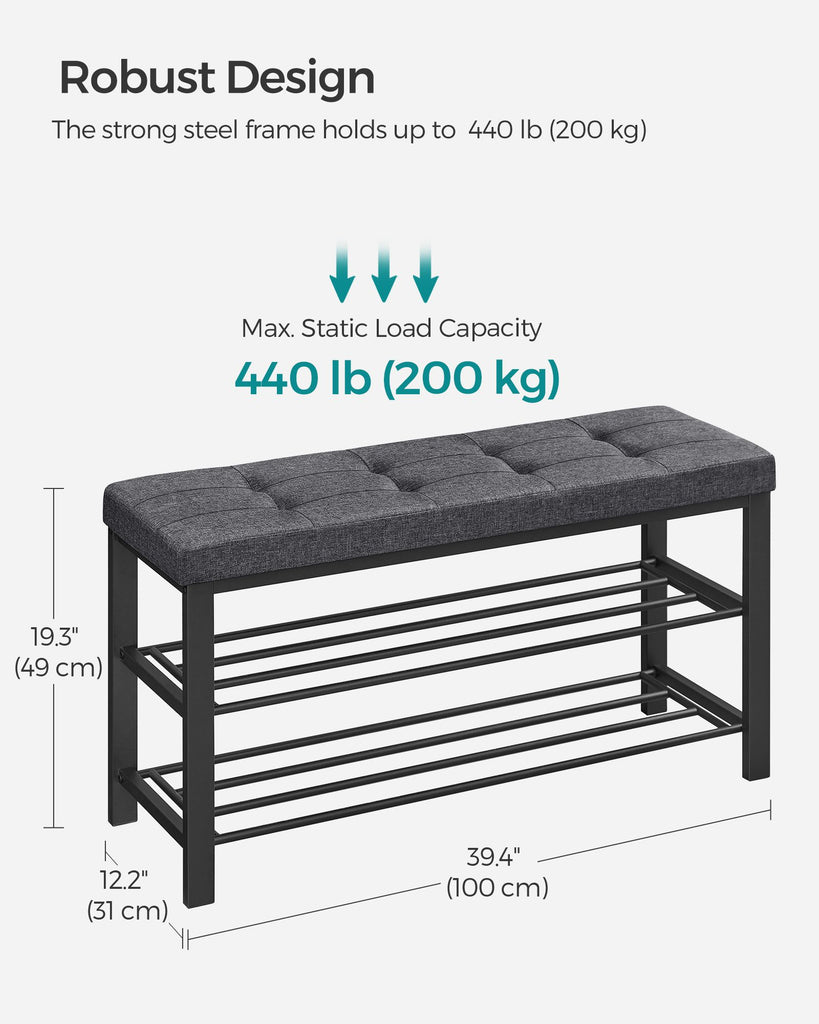 Product Size: 12.2D x 39.4W x 19.3H (31 x 100 x 49 cm)